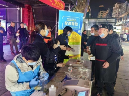 活动现场,检测人员在夜市设立快检台,对商家、消费者送检的菜花、白菜、西瓜、苹果、豆皮、牛肉、鱿鱼等食品进行现场检测,主要检测农药残留、 吊白块、兽药残留等项目,并现场告知结果。同时,市场监管人员对夜市摊点场所卫生、原料采购、加工操作过程、人员健康管理等进行全面检查。要求各摊位经营者严格把关食品原材料管理、加工制作等重点环节,加强风险管控,落实好食品安全主体责任。对检查中发现的问题现场进行指导,要求经营者立即整改。活动现场快检食品共12批次,结果全部合格。