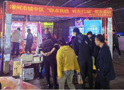 城中区风情港便民夜市因不少消费者推荐点评而爆红,已经成为大众尤其是外来旅游者的必游打卡点。为加强食品安全监管,有效预防食物中毒及食源性疾病的发生,保障人民群众的饮食安全,城中区市场监管局于2023年11月14日在城中区风情港便民夜市开展“你点我检 桂在行动”服务活动。