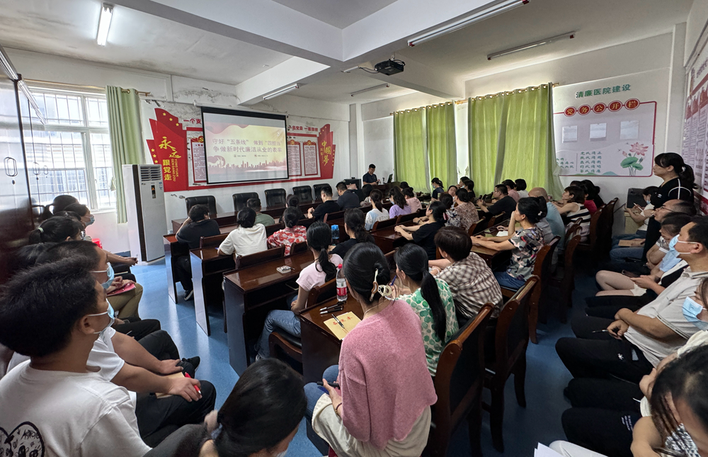 会议首先通报一起我区医务人员在医药领域腐败问题集中整治的违纪案例。随后,区卫生健康局党组成员钟祥海同志进行题为《守好五条线、做到四担当,争做新时代廉洁从业的表率》的党风廉政教育及警示教育专题授课,生动运用违纪典型案例,通过以身边事教育身边人,教育引导卫生健康系统党员干部增强遵纪守法意识,培养良好医德医风,规范医疗服务行为,提高廉洁从医的自觉性。