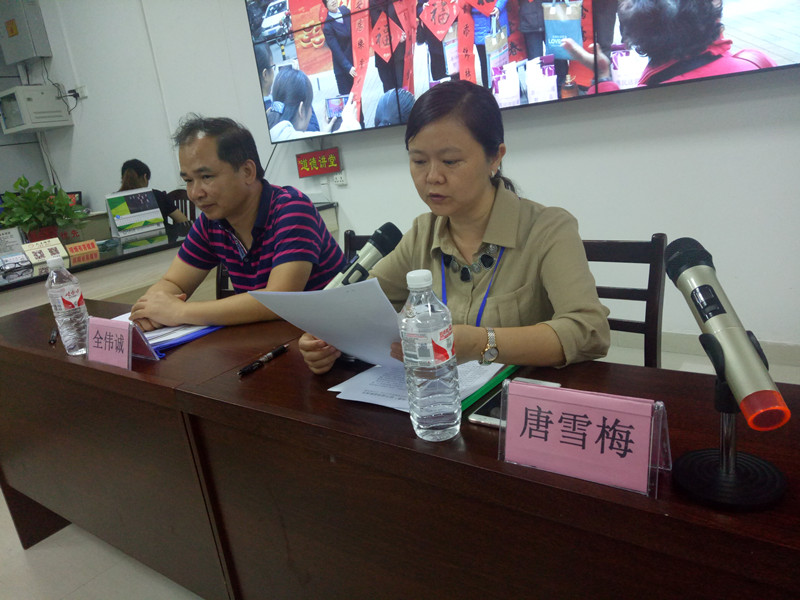 (图为社区书记唐雪梅对任期内工作进行述职)