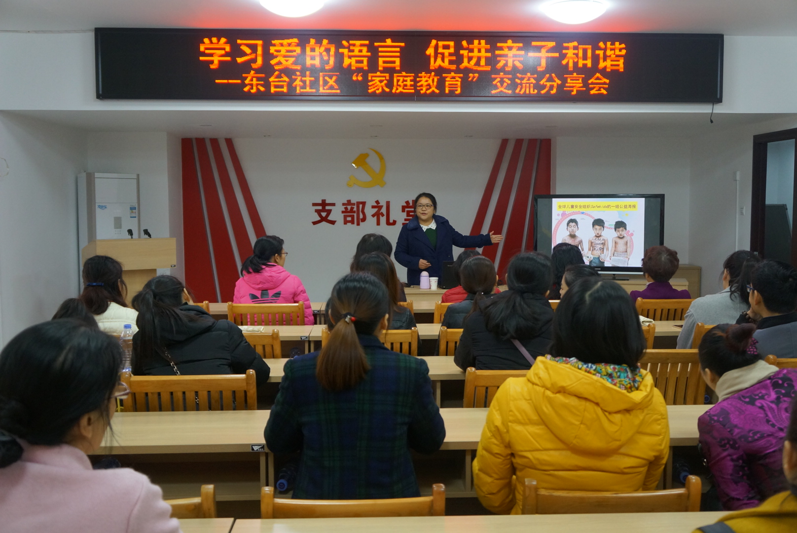 本次活动吸引了近30多名辖区家长参加。讲座中,莫老师通过提问、视频、案例相结合的讲座形式,同时还利用最近很火的真人秀节目《爸爸去哪儿》第五季中“陈小春父子”的亲子冲突对话来探讨,让大家感受家庭教育对孩子成长过程中关键期的重要性。让家长看清自己和孩子交流的存在问题,学会变命令为尊重,变斥责为宽容,变冷漠为关爱。学会与孩子相处时要给予肯定和表扬,真正了解孩子的需求。当孩子成功时,要及时表扬;当孩子面对失败时,要教会孩子正确面对挫折。学习爱的语言,促进家长与孩子和谐相处。
