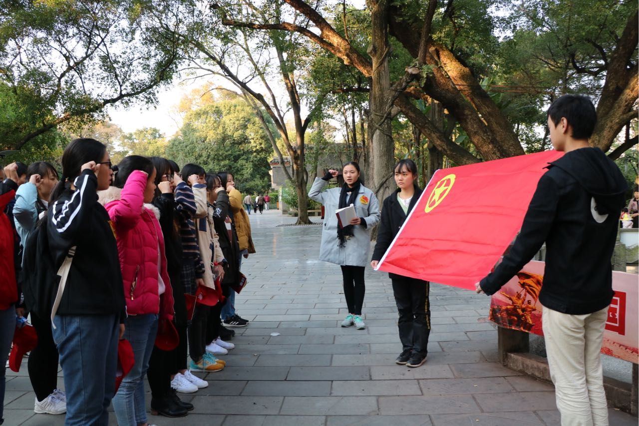 宣讲结朿后,学生团员们来到到柳州解放纪念碑前举行专题团队日活动。