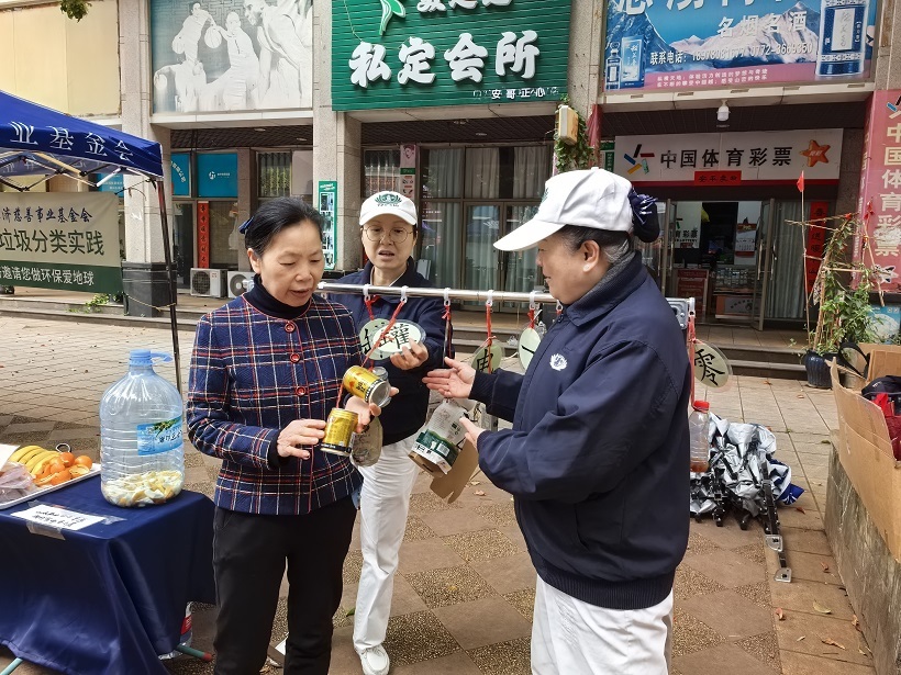 活动开始了,居民们积极参与活动,现场气氛热烈。首先山水社区垃圾分类宣传员和志愿者向小区居民宣传如何进行生活垃圾分类以及垃圾分类的意义、好处。垃圾分类可以分为四大类:可回收物、有害垃圾、厨余垃圾、其他垃圾。然后志愿者分享了许多实用的变废为宝小技巧,把日常生活中的易拉罐、塑料瓶、水果包装袋等常见废弃物变废为宝,将这些看似无用的垃圾转化为有用的资源。最后,社区垃圾分类宣传员还向居民普及节能环保知识,强调节约用电、不乱扔垃圾等良好生活习惯的重要性,并鼓励居民积极参与到垃圾分类和环保行动中,将文明健康、绿色环保的生活方式融入日常工作和生活中。