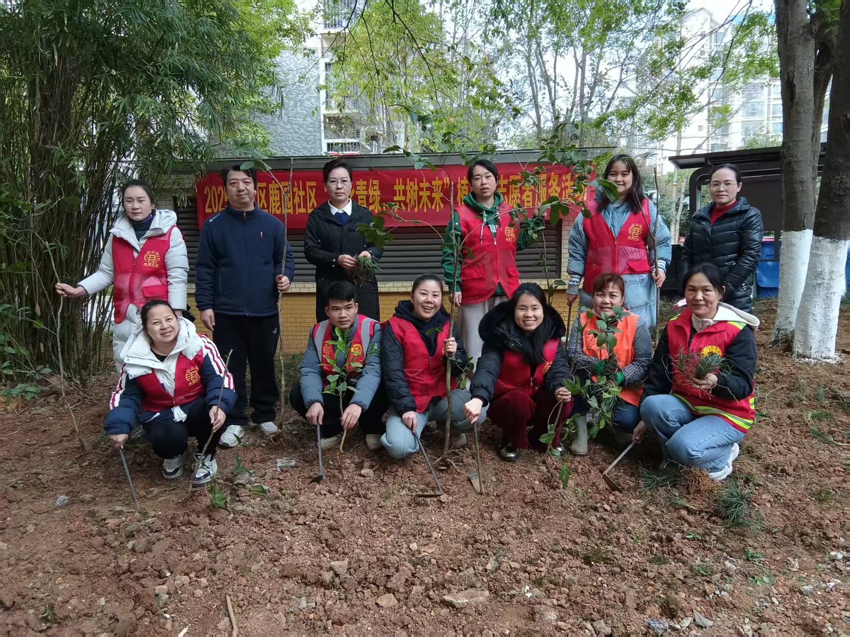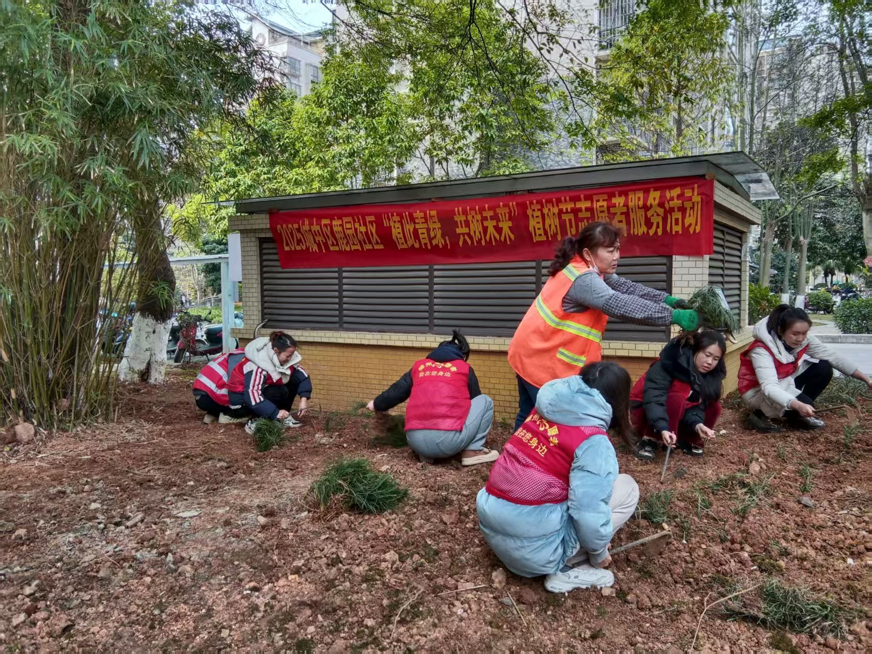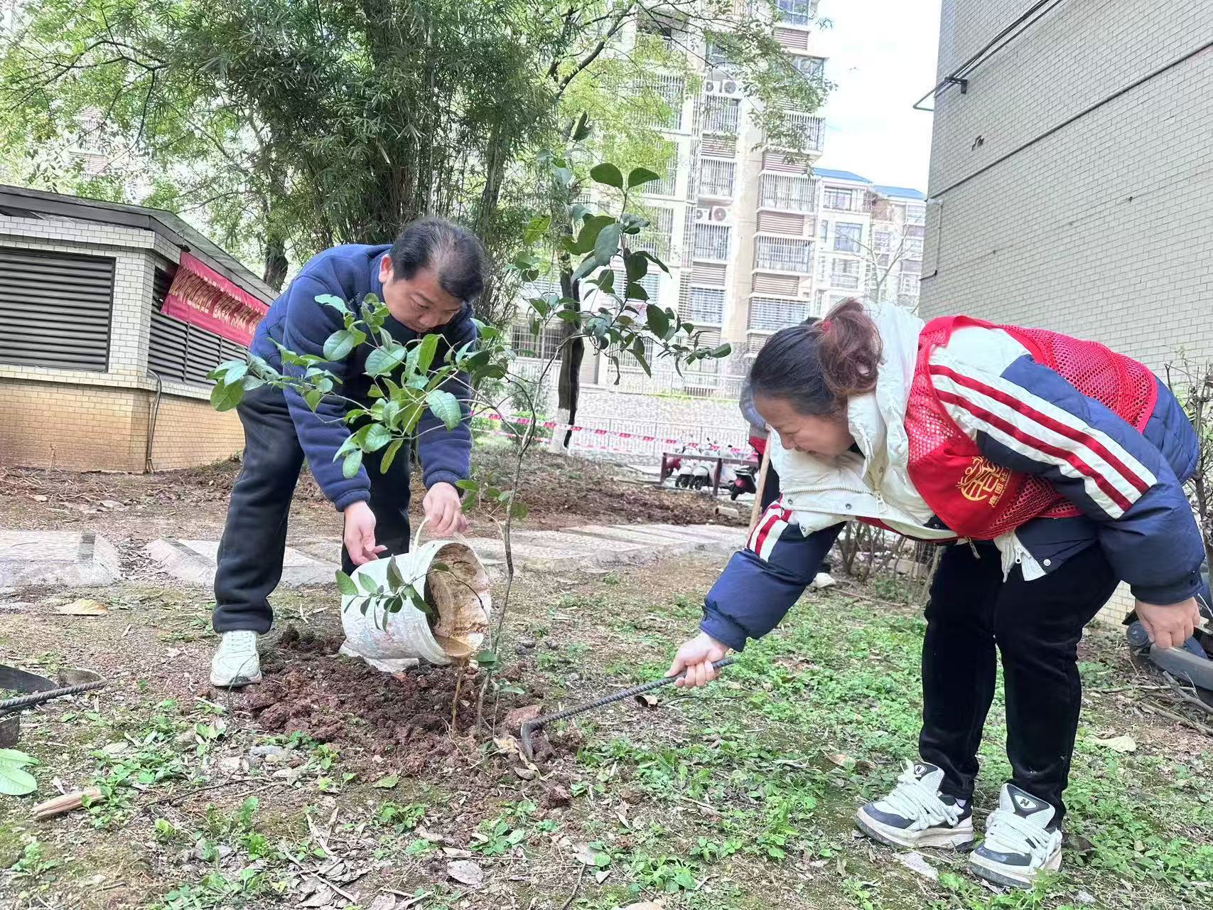 2025年3月18日,鹿园社区“植此青绿,共树未来”植树节活动在锦绣龙城小区里成功举行,社区党员干部和志愿者们大家热情高涨、干劲十足,扶植树苗、铲土造坑,在勤劳的汗水中种下一株株桂花树和一棵棵麦冬草,这一棵棵桂花树苗,满载了植树人的热情,这一棵棵麦冬草种下了绿色的希望,让我们携手起来绿化环境,为打造绿色家园贡献力量。