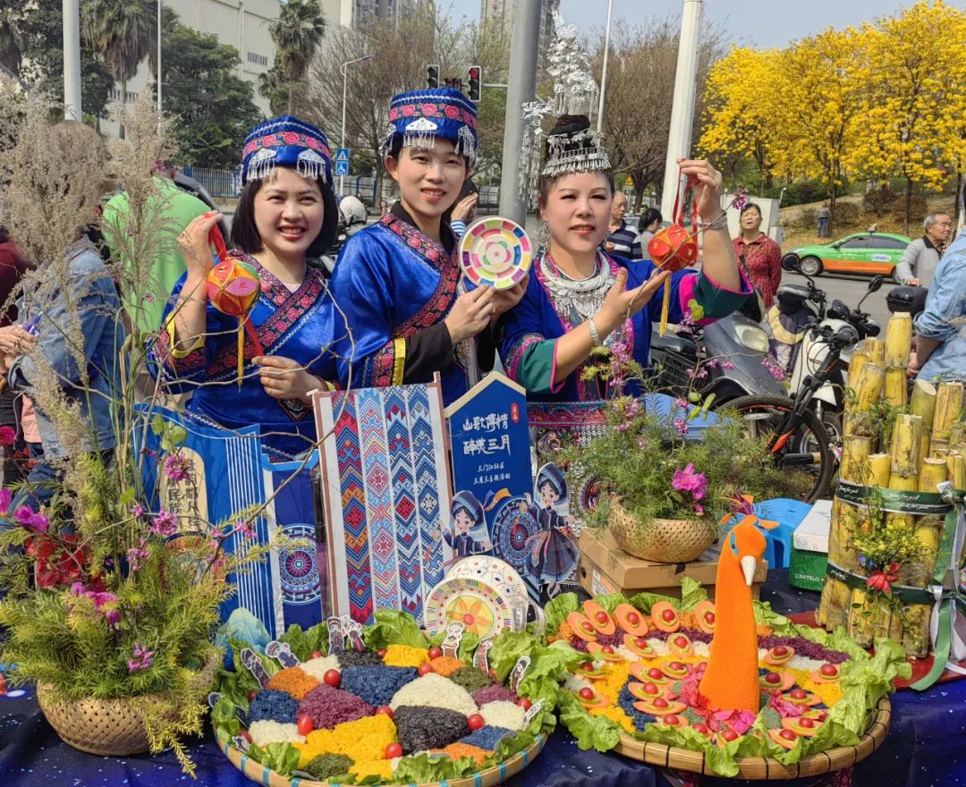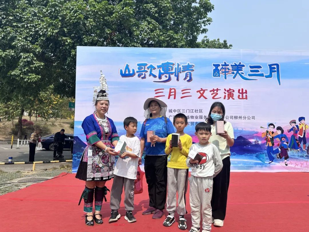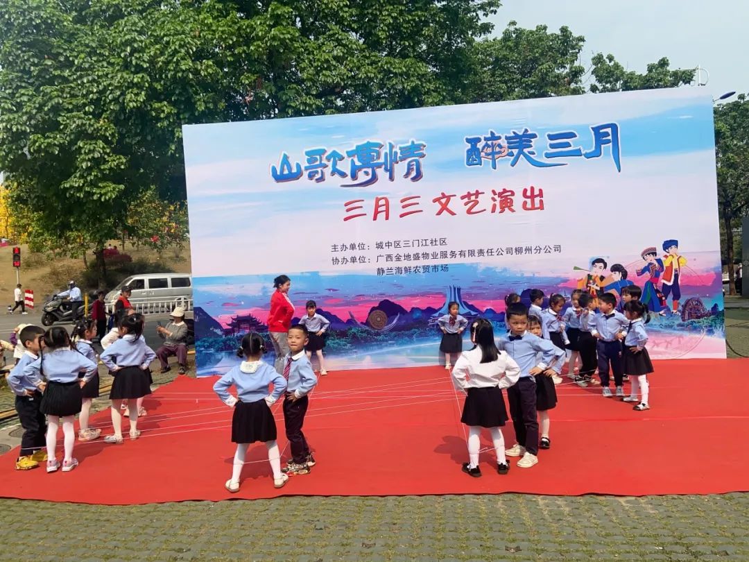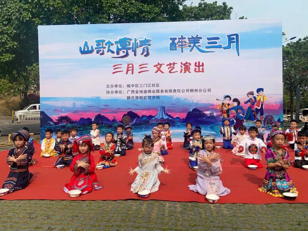3月26日上午,三门江社区在辖区大都沁园静兰海鲜农贸市场门前成功举办了 “山歌传情,醉美三月” 三月三文艺汇演,此次活动吸引了众多辖区居民热情参与,现场洋溢着浓郁的民族文化氛围。