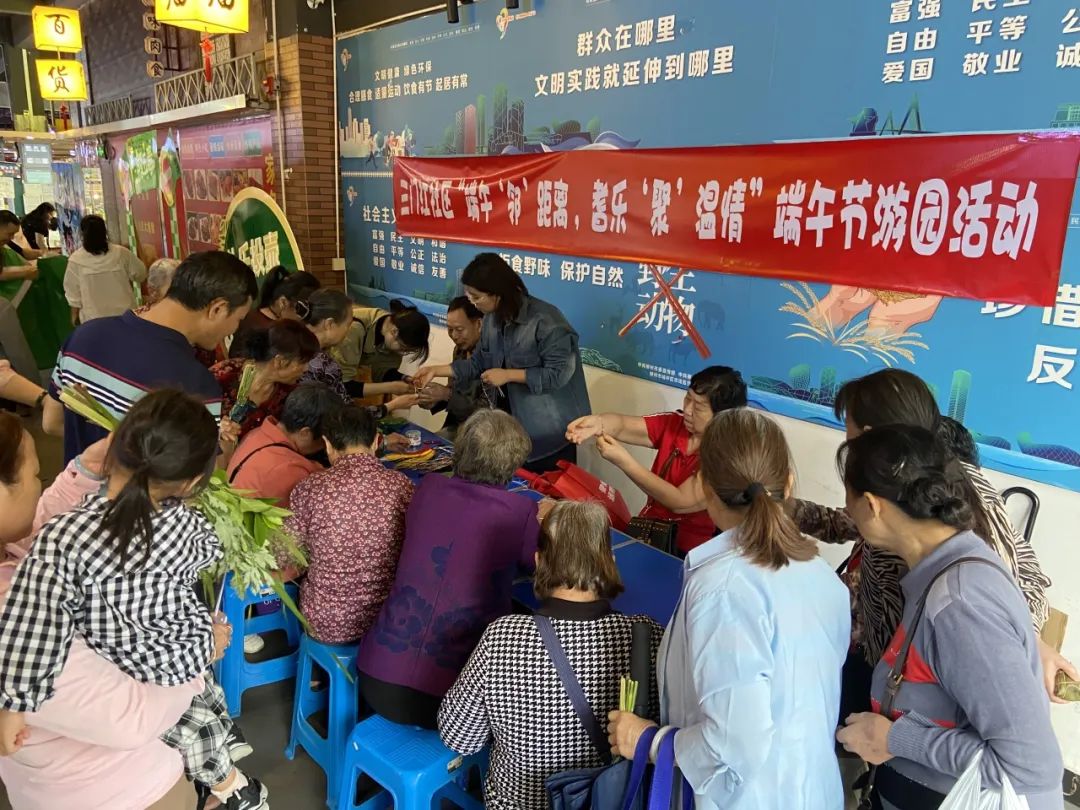 细密的雨丝如银针般斜斜洒落,却挡不住三门江社区里涌动的融融暖意。5 月 29 日,三门江社区开展 “端午‘邻’距离 耆乐‘聚’温情” 端午节活动。上午,社区联合挂点单位三门江林场、城中区征补中心、三门江中学开展为辖区独居老人、高龄老人上门送温暖与关怀行动。下午,在辖区大都沁园静兰海鲜农贸市场门口开展端午节游园活动。此次活动将端午民俗、敬老服务与清廉文化深度融合,不仅为居民带来节日欢乐,更让清廉之风浸润社区的每一个角落,吸引了众多社区居民参与。