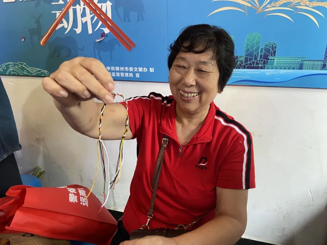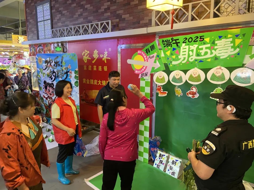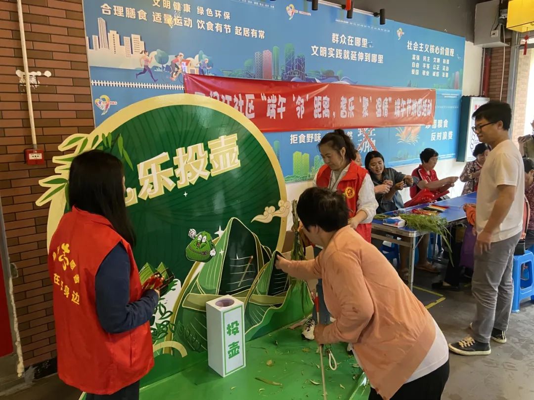 互动游戏区更是笑声不断、欢乐四溢。“射五毒驱邪纳吉”游戏前,居民们手持沙包,全神贯注地瞄准五毒靶盘,投中 2 个以上的幸运儿满心欢喜地兑换到新鲜艾草束;“钓粽子趣味赛”中,参与者紧握钓竿,争分夺秒地钓取象征吉祥丰收的粽子,1 分钟内钓到的粽子可直接带走,大家在紧张有趣的氛围里体会收获的喜悦;“好运投壶”游戏别具特色,缠绕着艾草的箭身投中壶中时,清香四溢,寓意吉祥,居民们跃跃欲试,投中者开心地领取小奖品;“巧手编五彩绳”活动吸引了众多老年朋友和居民,“银龄先锋”志愿服务队的老年人现场教学,大家精心挑选彩绳,认真编织,完成的五彩绳作品不仅寓意祈福平安,更成为一份独特的节日纪念。这些游戏不仅增添了节日的欢乐气氛,更在潜移默化中传播了清廉社区建设的理念。