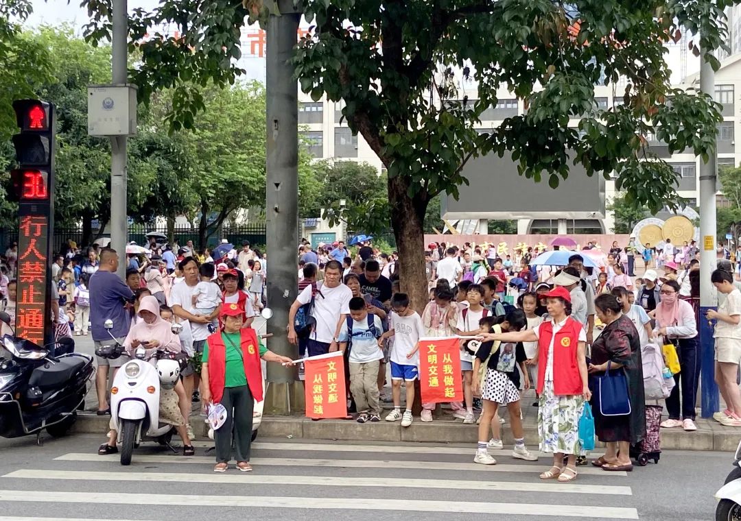 这支队伍的组建源于一场令人纠心的交通事故。去年在紫荆花幼儿园门口,三名放学途中的孩子被疾驰的汽车撞倒,其中一名女孩被撞飞数米远。这一事件深深触动了社区老党员们。“我们虽然退休了,但党员的责任不能退。”在社区党委的号召下,以覃云方为队长的银龄志愿服务队迅速成立,党员带头认领“护学岗”,用行动践行初心使命。