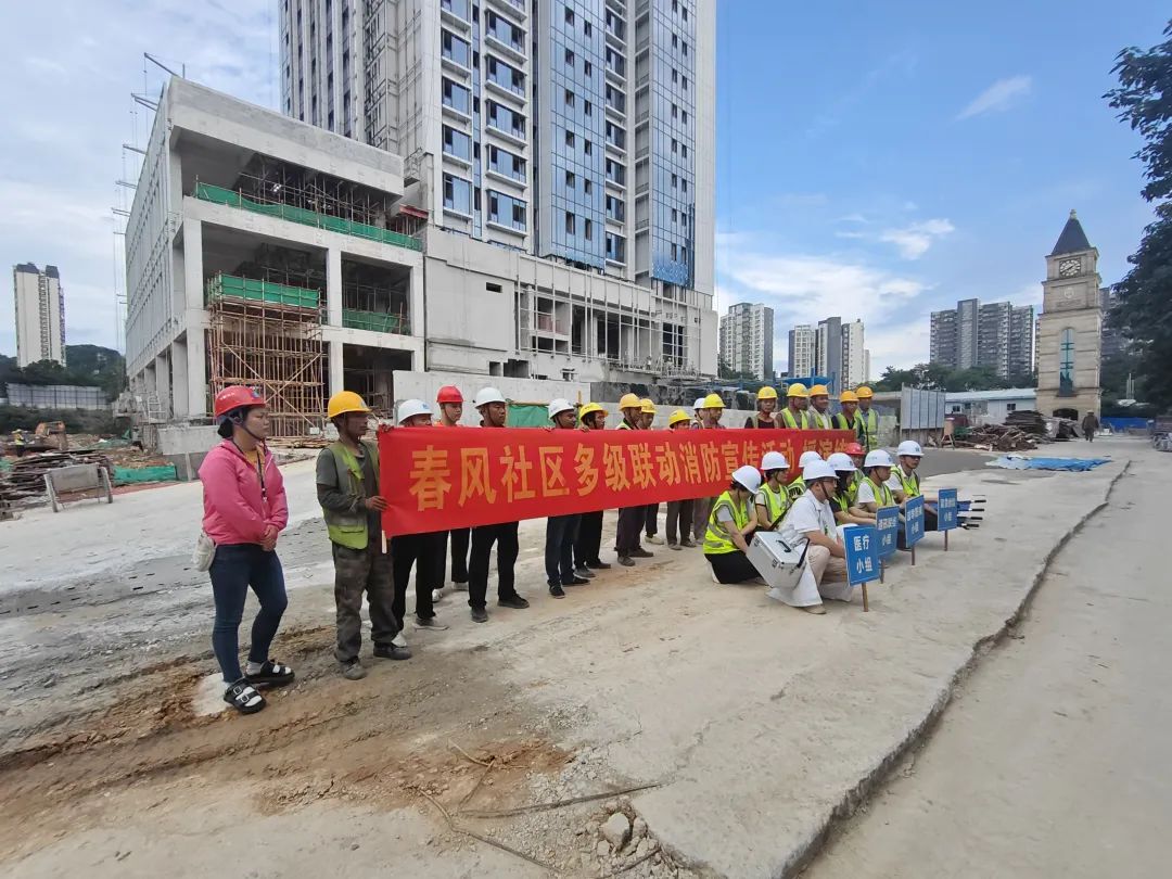 今年6月是第24个全国“安全生产月”,为进一步增强辖区居民的消防安全素质,切实预防公共区域和家庭突发事件的发生、最大限度地减少和降低损失。6月23日下午,春风社区联合辖区中建四局恒大商业中心项目部在恒大华府商业中心施工现场举行了一场消防安全应急救援演练,在演练现场集中地进行了消防应急知识讲解。春风社区、恒大商业中心项目部工作人员共30多人参加了此次活动。