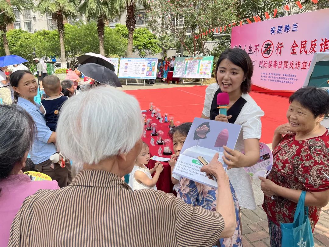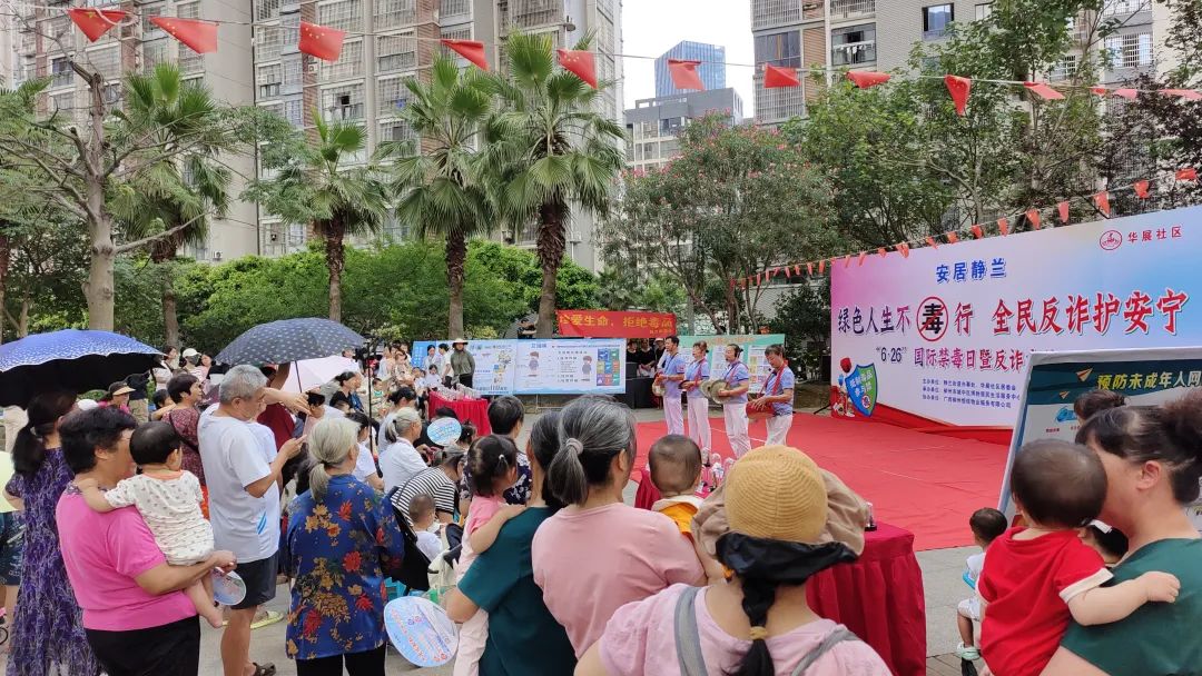 为深入贯彻街道办事处“安居静兰”工作方案,提升社区安全治理水平,增强居民禁毒、防诈、防艾意识,6月25日上午,华展社区在华展华园28栋小广场举办“绿色人生不‘毒’行,全民反诈护安宁”国际禁毒日暨反诈宣传活动。活动通过小品表演、情景剧、互动体验等多元化形式,向社区居民普及安全知识,营造全民参与平安建设的浓厚氛围。