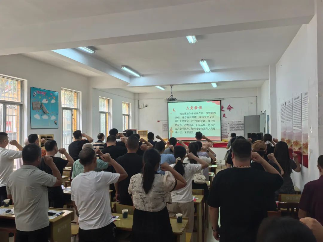 6月27日上午,静兰村党总支党员齐聚一堂。在党总支书记李丹丹的带领下,全体党员整齐地站好,高举右拳,庄严宣誓:“我志愿加入中国共产党,拥护党的纲领,遵守党的章程......”铿锵有力的誓言,饱含着对党的无限忠诚,彰显了为民服务的初心,激励着党员们在新时代的征程上奋勇前行。