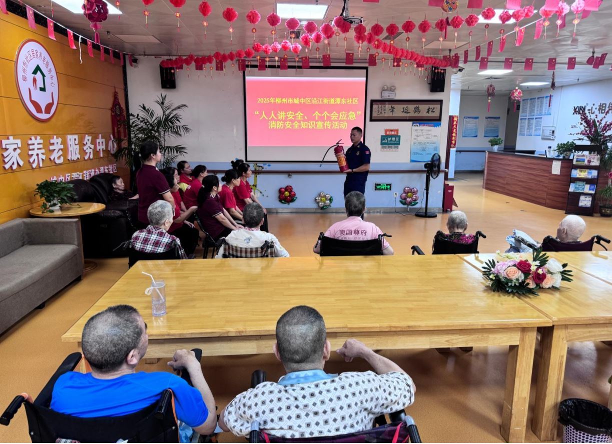 (城中区沿江街道讯 通讯员韦强报道)为提高我辖区居民消防安全意识,增强自救互救能力,2025年8月8日上午,潭东社区联合桂中特勤消防站、心相伴养老中心共同开展消防安全宣传及应急演练活动。活动分为理论讲解和实战演练两个环节。