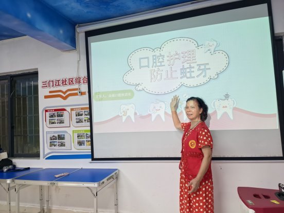 为切实增强辖区青少年口腔健康意识,帮助孩子们养成科学护牙习惯,8 月 25 日上午,三门江社区邀请银龄志愿者杨奶奶,在社区活动中心开展了一场生动有趣的 “护牙知识小课堂”,用 “银发力量” 为青少年健康成长注入温暖关怀。