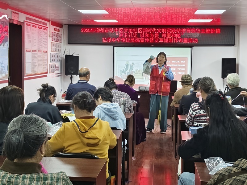 (城中区公园街道办事处讯 通讯员吴卓霞报道)为进一步弘扬中华传统美德,营造邻里和睦的社区氛围,11月25日下午,罗池社区在新时代文明实践站开展了“讲求礼让 以和为贵 邻里和睦”为主题的弘扬中华传统美德宣传暨艾草捶制作邻里活动,吸引了20名居民积极参与。