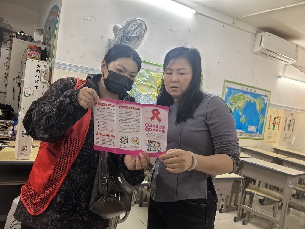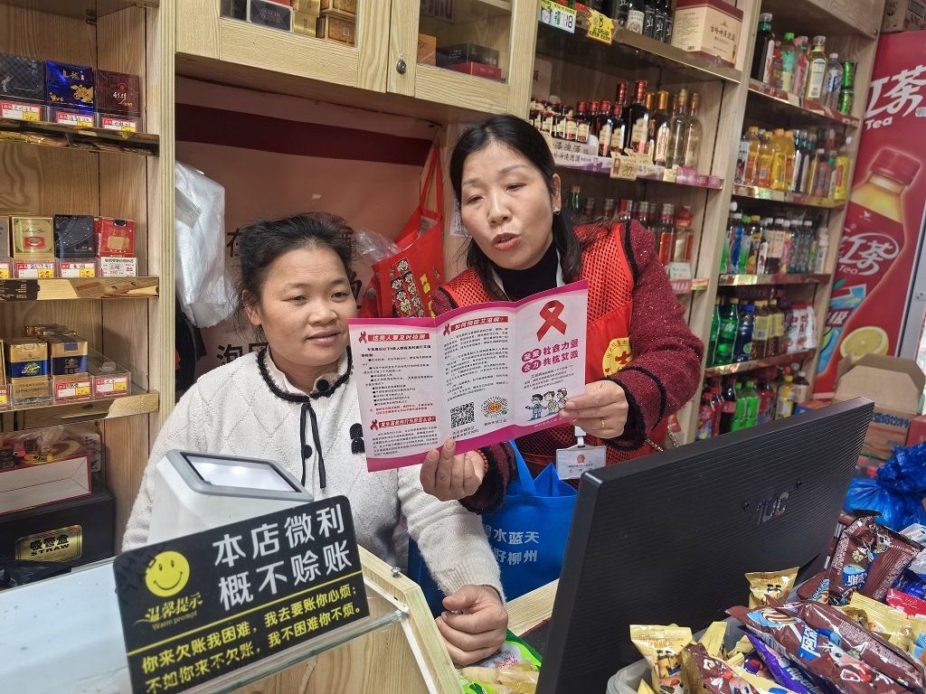 (城中区河东街道讯 信息员何金莲、蒋婷报道、摄影)2025年12月1日是第38个“世界艾滋病日”,柳州市城中区河东街道山水社区防艾宣传员与志愿者,围绕“社会共治、守正创新、终结艾滋”主题,开展防艾宣传活动。