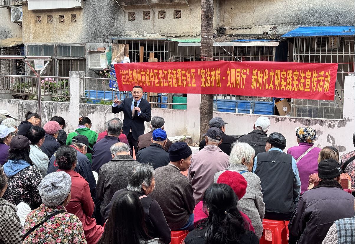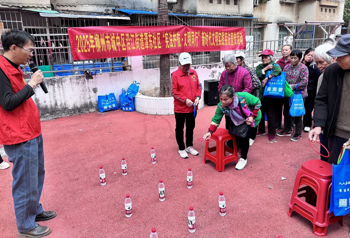 (城中区沿江街道讯 通讯员杨明彦报道)为迎接国家宪法日,进一步普及宪法知识、弘扬宪法精神,让法治理念走进社区、融入生活,2025年12月4日上午,潭东社区新时代文明实践站在健身小广场成功举办2025年柳州市城中区沿江街道潭东社区“宪法护航·文明同行”新时代文明实践宪法宣传活动,60余名辖区居民踊跃参与,在轻松互动中感受法治力量。