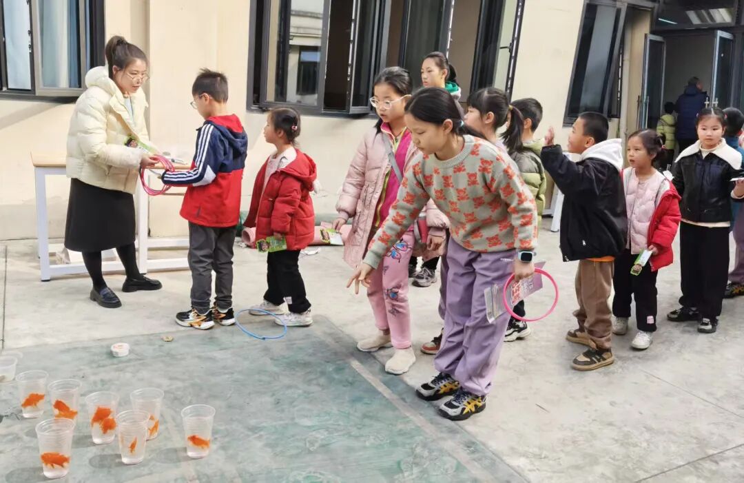 “套中啦!套中啦!我套到乌龟啦!”随着一声声欢呼,不少孩子成功套中了心仪的礼物——有的套到了灵动的小金鱼,有的套到了可爱的小乌龟,脸上洋溢着自豪与喜悦。即使暂时没有套中,大家也毫不气馁,在老师和同伴的鼓励下,一次次尝试,享受着游戏带来的纯粹快乐。