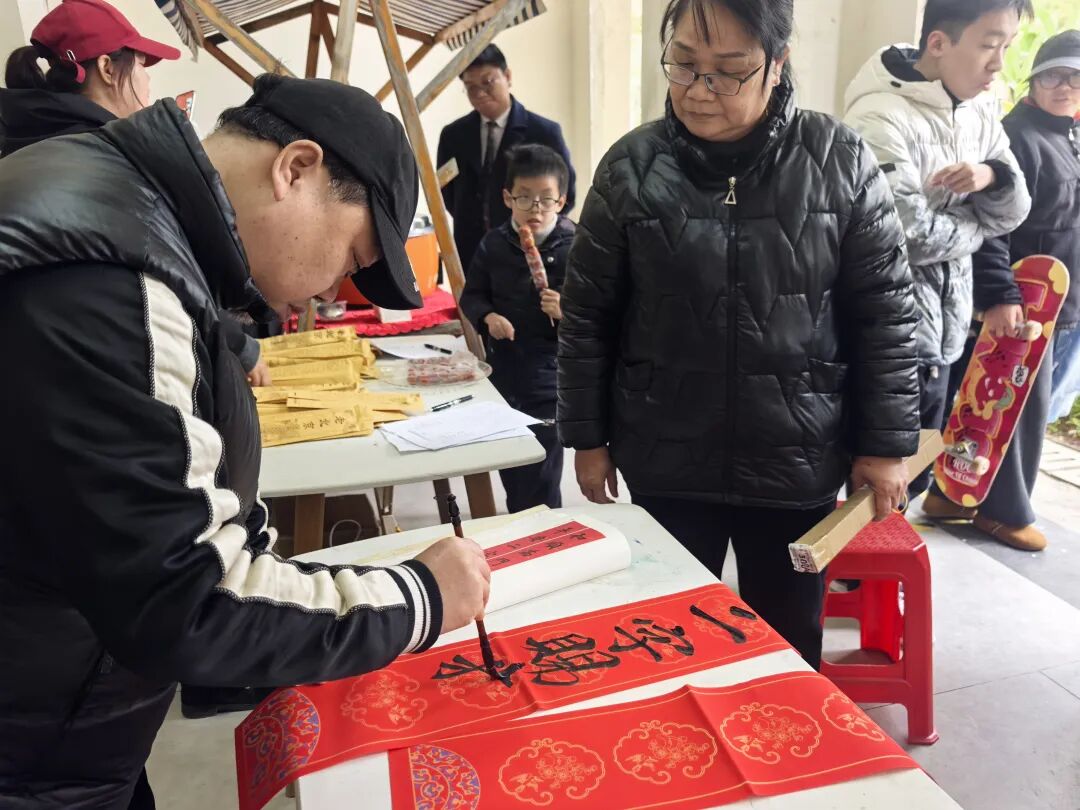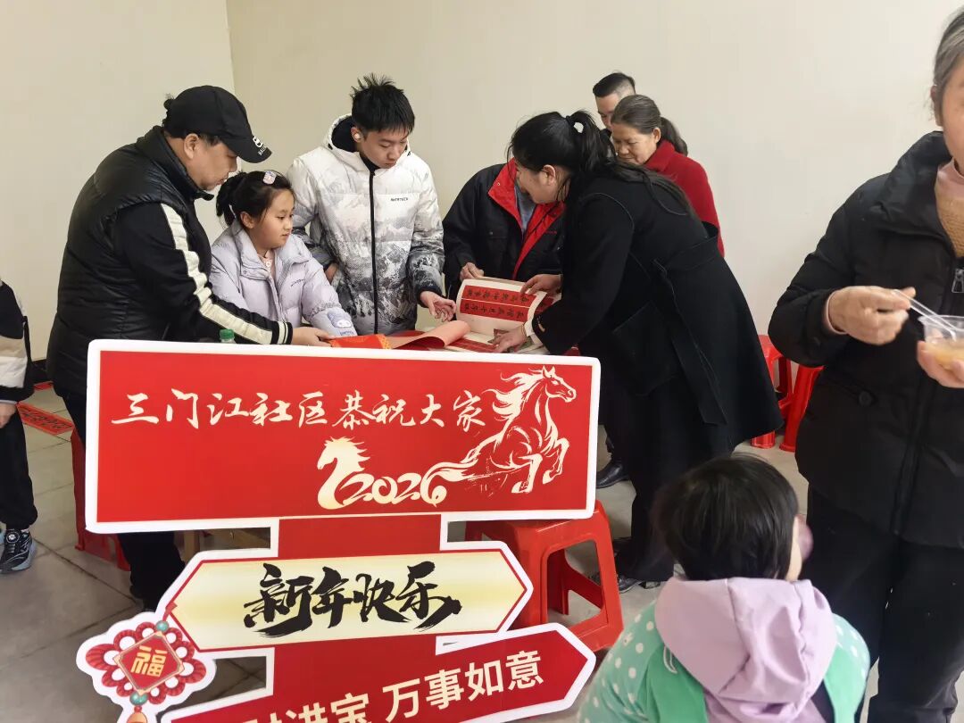 岁序更替,金马迎春。为浓厚2026马年新春喜庆氛围,丰富辖区居民精神文化生活,传递邻里温情与新春祝福,2月11日下午,三门江社区携手大唐观邸物业服务中心,在大唐观邸小区开展“对联DIY”主题活动,邀请居民齐聚一堂,以笔为媒、以联传情,共赴一场墨香四溢的新春之约。