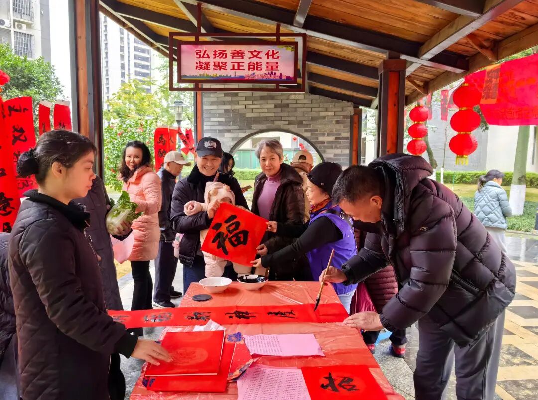 新春将至,年味渐浓。为弘扬中华优秀传统文化,营造欢乐祥和、温馨和睦的节日氛围,2月12日,春风社区联合温馨花园小区泓福物业,在小区内举办“迎新春、送祝福、暖邻里”主题活动,通过义写春联、赠送白菜、文艺演出三大环节,把年味、福味、人情味送到居民家门口。