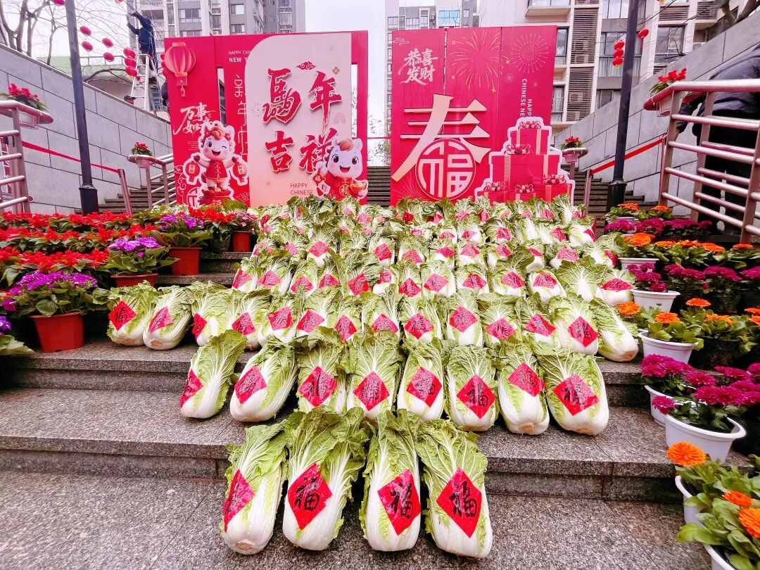 一旁的送白菜纳百财环节备受欢迎。社区与物业精心准备了新鲜翠绿的大白菜,免费发放给居民。白菜谐音“百财”,寓意新的一年财源广进、平安顺遂。一份份实在又暖心的礼物,让居民真切感受到社区与物业的贴心关怀,现场暖意融融。