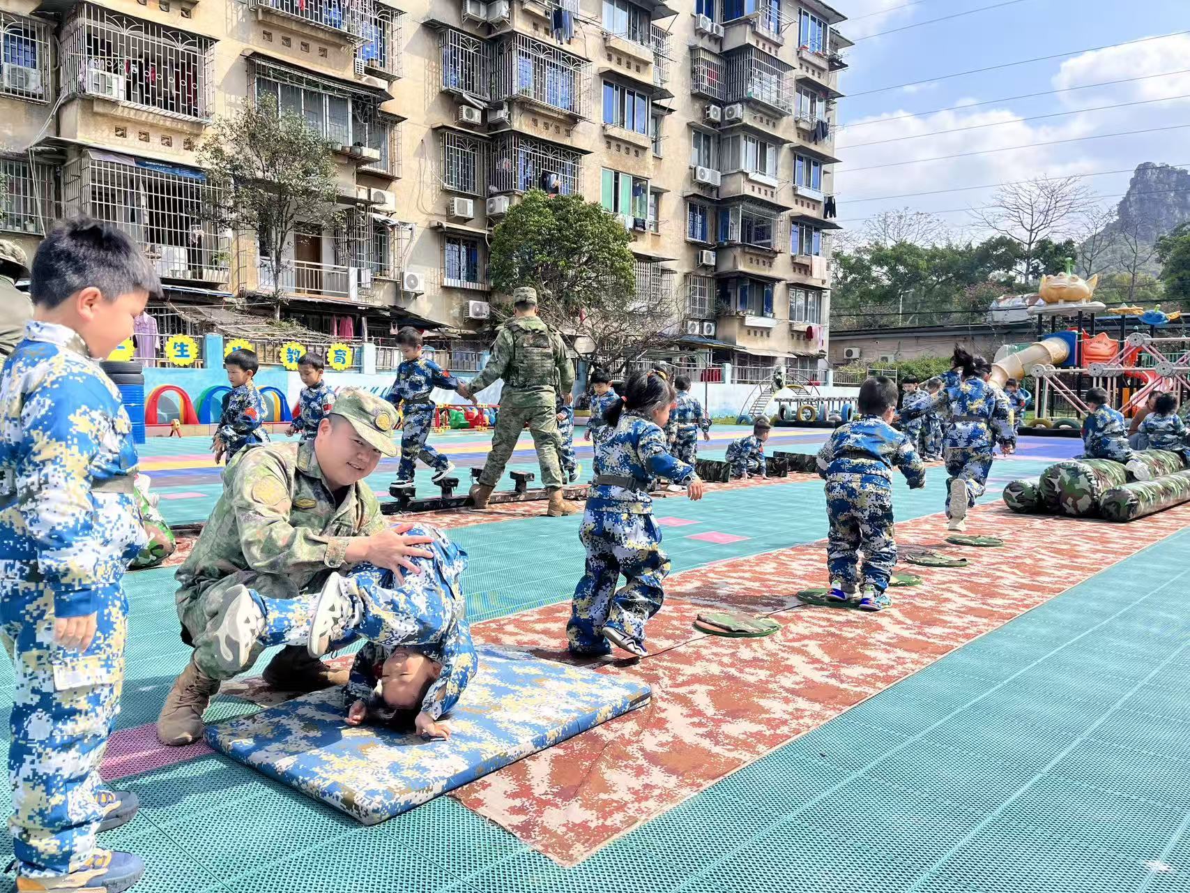 (城中区沿江街道讯 通讯员覃灿华报道)为传承红色基因,厚植幼儿爱国爱军情怀,锤炼坚强意志,近日,柳州市城中区沿江街道潭东社区新时代文明实践站联合潭中幼儿园,开展别开生面的“军旅课”活动,让孩子们在沉浸式体验中感受军人风采,收获成长力量。