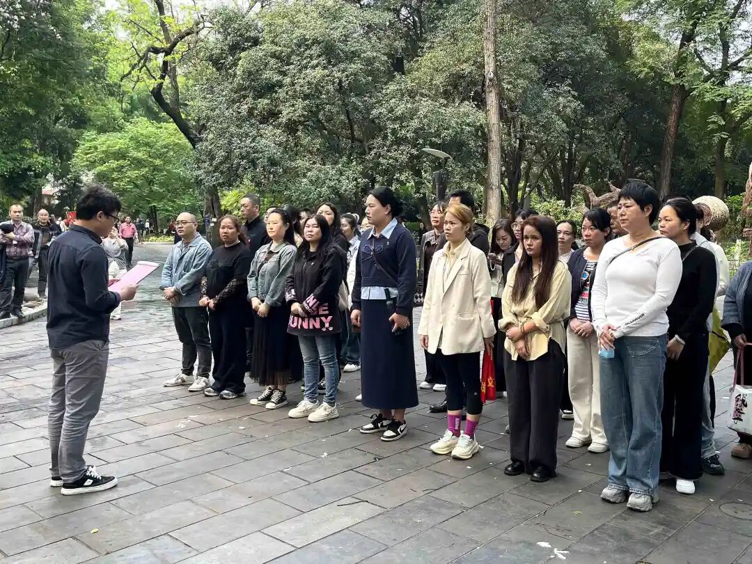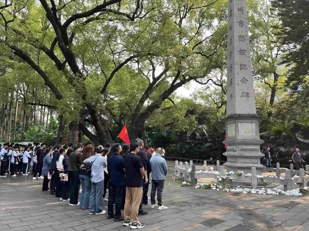 活动伊始,华展社区书记向全体参与人员详细介绍了柳州市解放纪念碑的厚重历史。这座纪念碑前身是1931年由桂系将领廖磊提议修建、白崇禧批准落成的“国民革命军陆军第七军阵亡将士纪念塔”,曾是纪念北伐牺牲将士的历史地标。1949年柳州解放后,于1950年11月改建为“柳州解放纪念碑”,由张云逸等领导人重新题词,见证了柳州从烽火岁月到和平解放的历史变迁,承载着不同时代的革命精神与红色记忆。