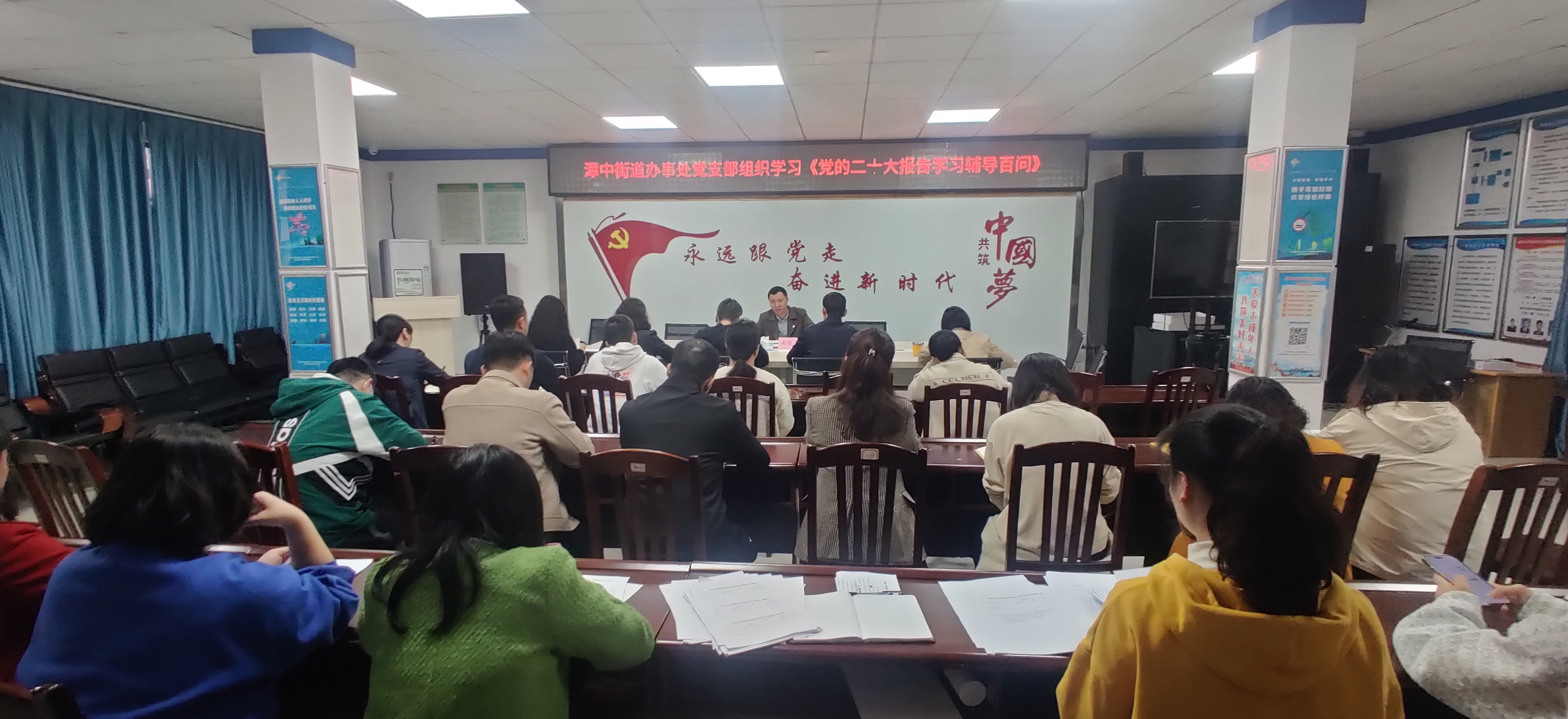 (城中区潭中街道讯 通讯员 陈俊安报道)为深入学习贯彻党的二十大精神,进一步提高全体党员干部的思想政治觉悟,以党的二十大精神为指引,开好头,布好局,潭中街道办事处党支部于3月15日下午,组织集中学习《党的二十大报告学习辅导百问》。