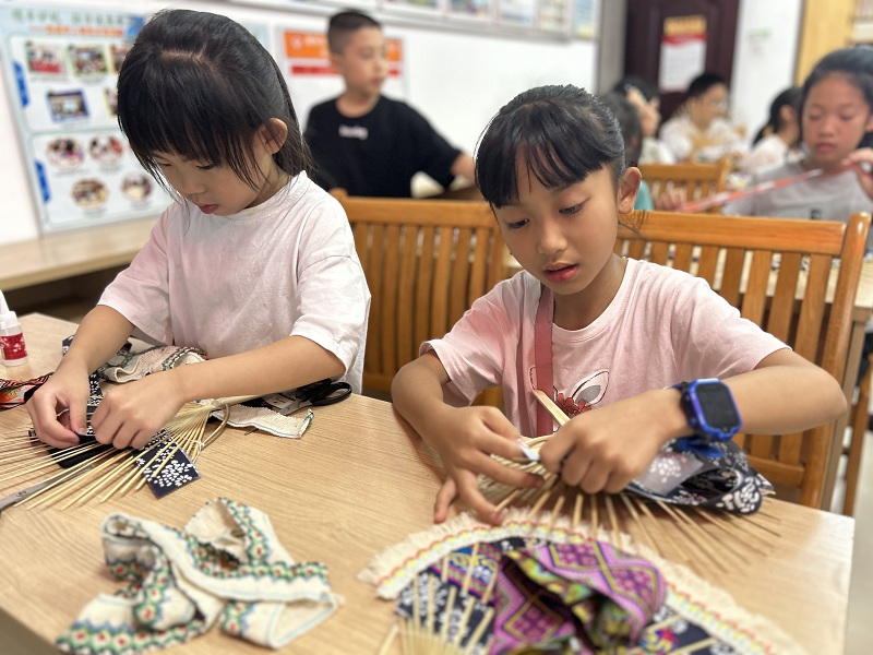 (城中区公园街道办事处讯 通讯员龚振熙报道)团扇文化历史悠久,不仅是中华文化传承的一个重要载体,而且扇艺本身就是一种独特的文化,是中华文明的组成部分。为让辖区未成年人在了解中国传统文化的同时,也丰富他们的课余生活,东台社区新时代文明实践站于9月15日开展了未成年人壮锦拼布团扇制作活动。