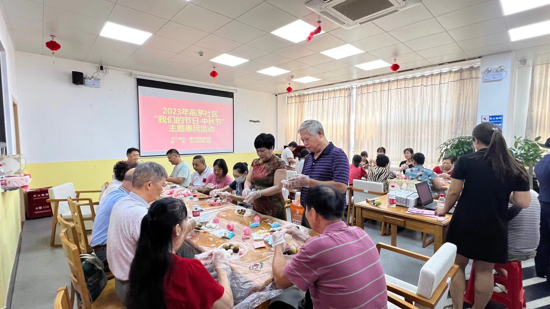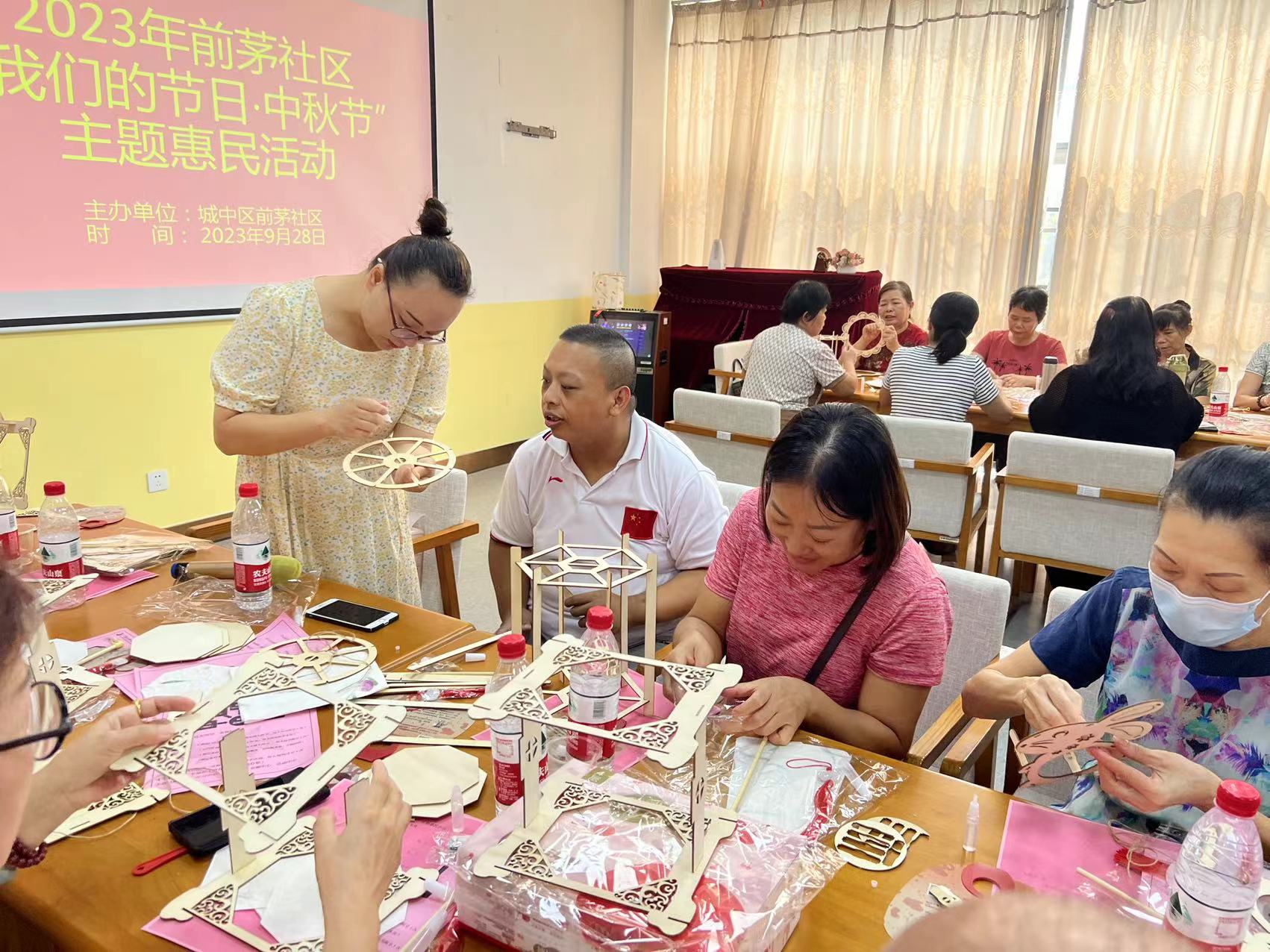 (城中区河东街道讯 前茅社区 莫露冰报道、摄影)“北雁千里传相思,金秋九月共团圆”,在中秋佳节来临之际,为弘扬中华民族传统文化,丰富社区居民精神文化生活,营造和谐的邻里氛围,大家聚在一起共叙邻里深情,共话幸福团圆!9月28日,前茅社区开展了“我们的节日·中秋”主题的惠民活动,活动内容丰富多彩,有做月饼、做花灯、猜灯谜、中秋知识有奖问答等等,其间还穿插反诈知识宣传!
