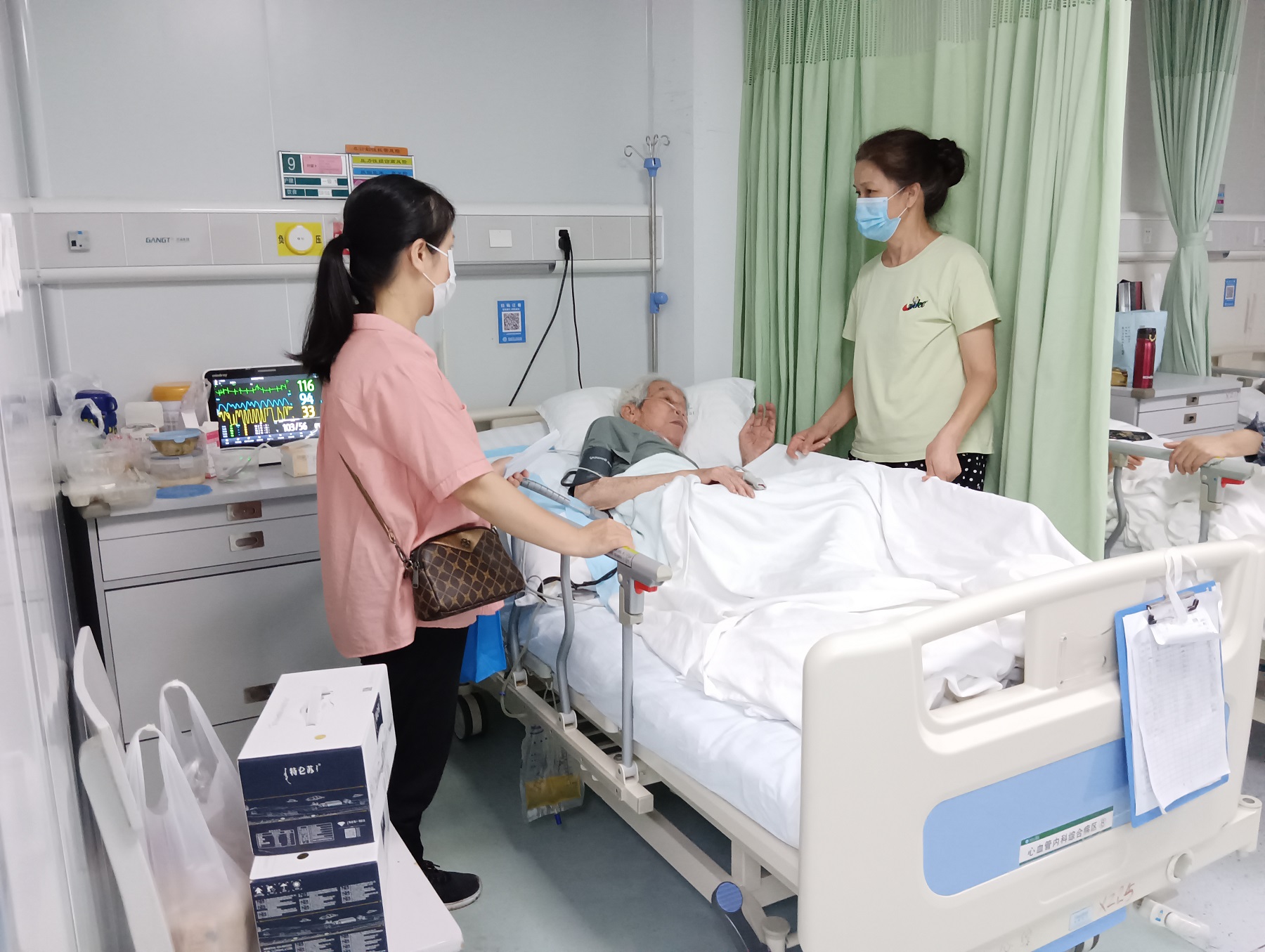 2024年6月6日晚,社区工作人员在网格下户过程中得知:兴佳山水福第小区的退休老人叶爷爷,现年已93岁高龄,因严重心衰住进了柳州市第一人民医院,老伴莫奶奶也因病住进了柳州市脑科医院。其女儿每天往返于两个医院之间照顾俩老,相当辛苦。次日上午,社区领导班子了解了这些实际情况后,决定当日下午安排工作人员去医院走访慰问这两位退休高龄老人。