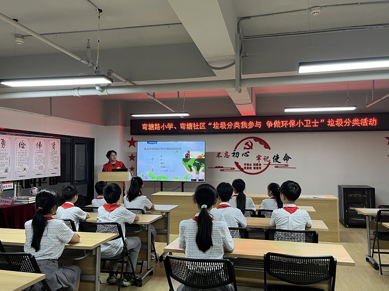 弯塘社区志愿者们利用PPT开展垃圾分类知识宣讲,形象生动地为同学们介绍垃圾分类相关政策、讲解垃圾分类知识,让他们对垃圾分类的知识有了更多认识和了解,鼓励同学们树立绿色文明的生活理念,养成良好的分类习惯。