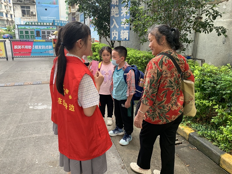 环保小卫士们纷纷为文明分类代言,向居民讲解分类知识,传递垃圾分类、人人有责的理念。