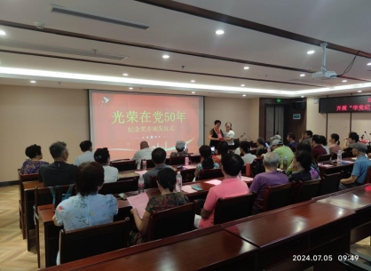 知识问答竞赛结束后,我们为入党50年的老党员们举办了光荣在党50年纪念章颁发仪式,对他们多年的奉献至于崇高的敬意。在仪式上,我们重温入党誓词,提醒党员干部始终铭记和恪守对党的庄严承诺。
