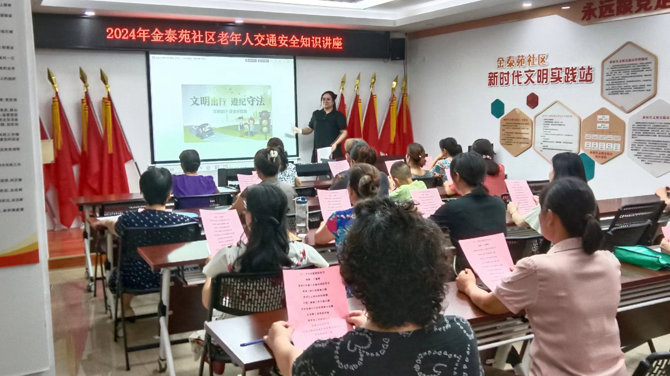 (城中区沿江街道讯 通讯员潘兰报道)“交通安全,教育为先”,为切实增强社区居民的交通安全意识,严格遵守交通法规,做文明的交通参与者。近日金泰苑社区利用社区活动讲解和宣传交通安全知识,引导群众自觉遵守交通法规,营造良好的道路交通环境。