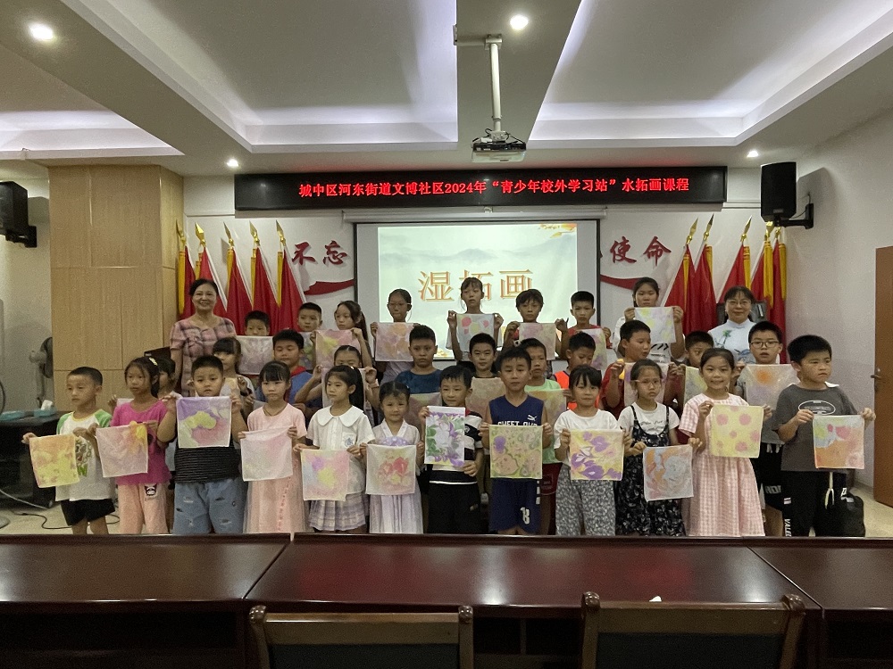 水拓画在呈现惊奇之余,充分调动了孩子们的视觉观察力,用简单的方式使孩子们完全自主探索,创作出充满活力、更具艺术魅力的作品,让孩子们与传统中国文化亲密接触,在优秀传统文化的浸润中快乐成长。接下来,河东街道文博社区将进一步提升活动效果,丰富活动形式,传承非物质文化遗产,助力孩子们健康快乐成长。