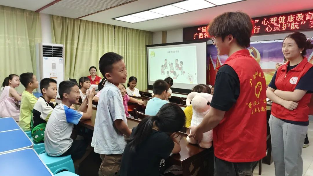 此次讲座特邀广西科技大学“青春同行,心灵护航”实践团主讲。讲座伊始,志愿者向孩子们介绍了心理健康的基本知识,如何识别和应对常见的心理问题,以及如何保持良好的心理状态。