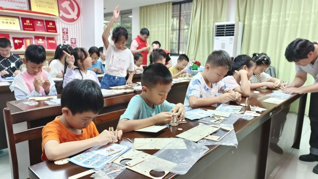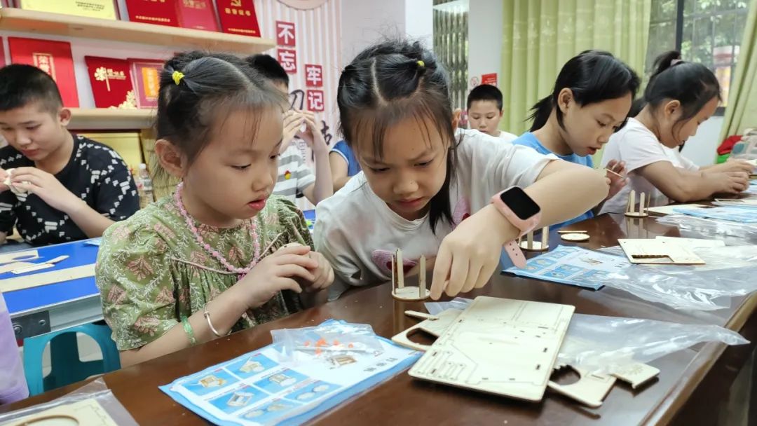 活动现场,郭老师通过图文并茂对打谷机的演变和使用进行了介绍,接着,孩子们在老师的带领下开始动手制作打谷机,孩子们神情专注,小小的零件在他们的手里翩翩起舞。年龄稍大一点的孩子一点就会,不到一会儿,就把打谷机组装好了。年龄小一点的孩子在制作过程中遇到困难,于是举手寻求老师的帮助,老师耐心地为每一位小朋友解决“难题”。经过孩子们一个多小时的努力,一台台做工精细的五谷丰登打谷机制作完成。大家纷纷举起自己的作品合影留念,活动室里充满了欢声笑语。