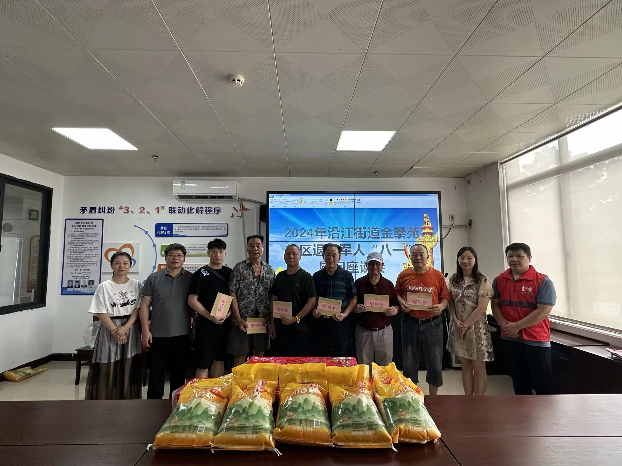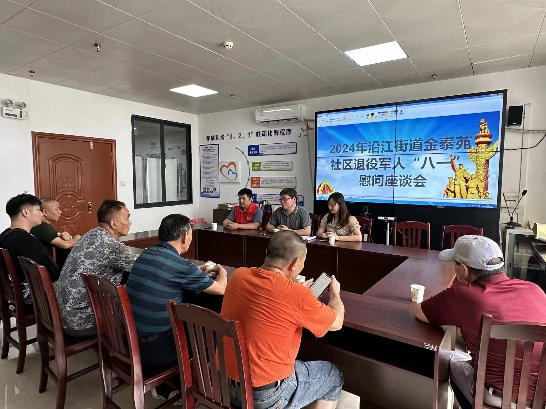 (城中区沿江街道讯 通讯员赵小媛报道)为进一步营造拥军优属、拥军爱民的光荣传统,共建军民鱼水情,营造“八一”建军节日氛围,7月31日,金泰苑社区开展了退役军人“八一”慰问座谈会。