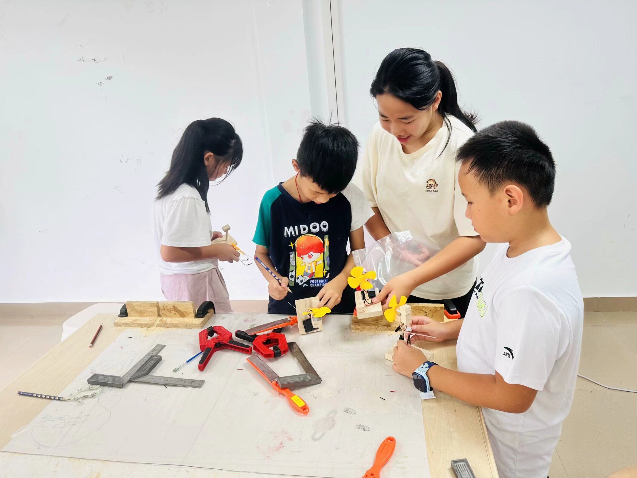 今天是第一场手工制作活动,主题是手工制作小电风扇。首先,志愿者老师通过生动有趣的方式,向孩子们介绍了电流、电路以及风扇工作的基本原理,让孩子们对电风扇的工作机制有了初步的理解。在理论讲解之后,孩子们迫不及待地开始了自己的制作过程。他们认真研究手中的材料,按照步骤组装零件,不时询问老师问题,现场充满了探索和创造的气氛。在动手操作的过程中,孩子们不仅锻炼了动手能力,还体验到了非物质文化的魅力。孩子们骄傲地展示他们的作品,有的电风扇设计独特,有的色彩鲜艳,每个作品都凝聚了孩子们的智慧和努力。活动最后,孩子们互相交流自己的制作经验,分享非物质文化制作的乐趣。