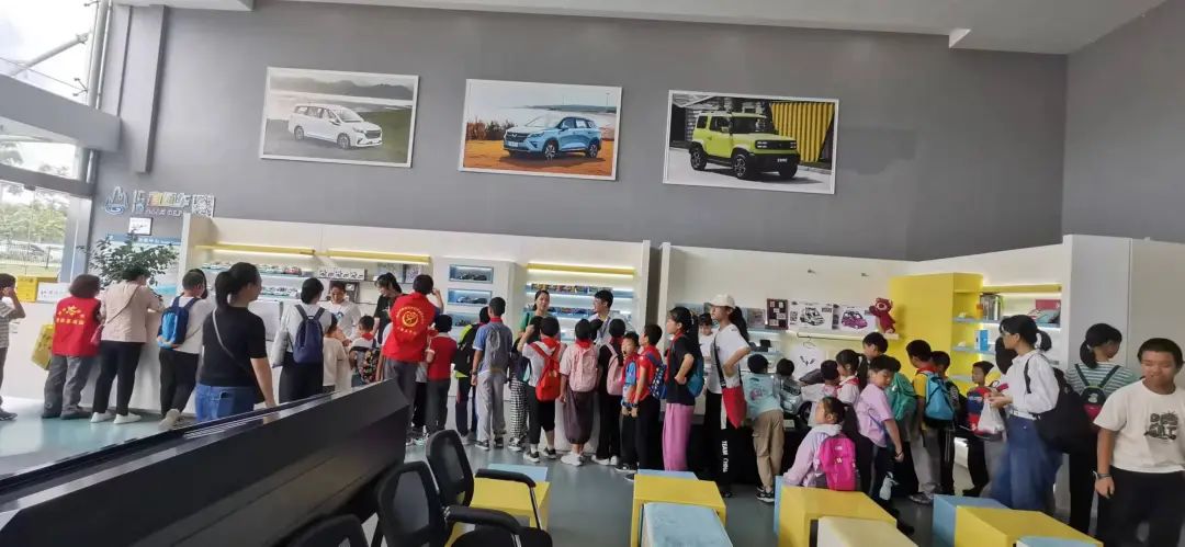 紧接着我们来到新能源展厅,工作人员提问孩子们新能源概念时,孩子们认真倾听,踊跃发言,积极与工作人员互动讨论。近距离接触到新能源汽车各种各样的模型、5G出行新体验、智慧能源等前沿科技,让他们大开眼界;现场观摩新能源汽车五菱KIWI、五菱缤果等各种新款车型,让他们感受现代汽车炫彩的魅力。通过实地参观交流,以及孩子们在日常的生活里看到了五菱宝骏汽车,切身体会到上汽通用五菱集团的“创造出行新生活”的企业品牌主张,深刻理解了柳州五菱“精益求精”的企业文化内涵。