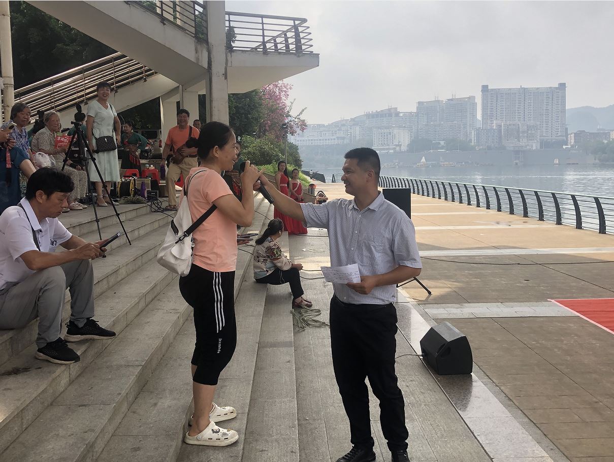 活动当天,工作人员早早地布置活动场地,9点30分汇演正式开始,首先由主持人为老人们送上节日的祝贺,祝愿他们节日快乐,万事如意,身体健康。接下来,活动在舞蹈《在希望的田野上》中拉开帷幕,小品《追梦人》、欢快的舞蹈《紫荊花下美如画》、女声二重唱《灯火里的中国》、古风舞蹈《汉舞韵》、彩调剧段《四门摘花》、男女声对唱湖北民歌《黄四姐》、舞蹈《新时代的追梦人》等8个精彩的节目将表演推向一个又一个高潮,台上激情满怀,载歌载舞,台下乐开了怀。在文艺汇演中进行了观众互动问答,现场观众参与有奖问答,赢取精美纪念品。让辖区的老人们切实感受到了党和政府、城中区文化体育局、社区的关爱,感受到一份特殊的亲情。居民自编自演的节目,展现社区文化的独特魅力和居民们的才艺。