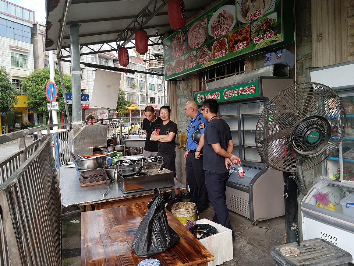(城中区河东街道讯 信息员孙蕾报道、摄影)2024年9月26日,河东街道办事处、文博社区联合城中区执法局、桂中派出所、市场监督管理局、环保局等部门,对辖区内的某烧烤店开展联合执法。