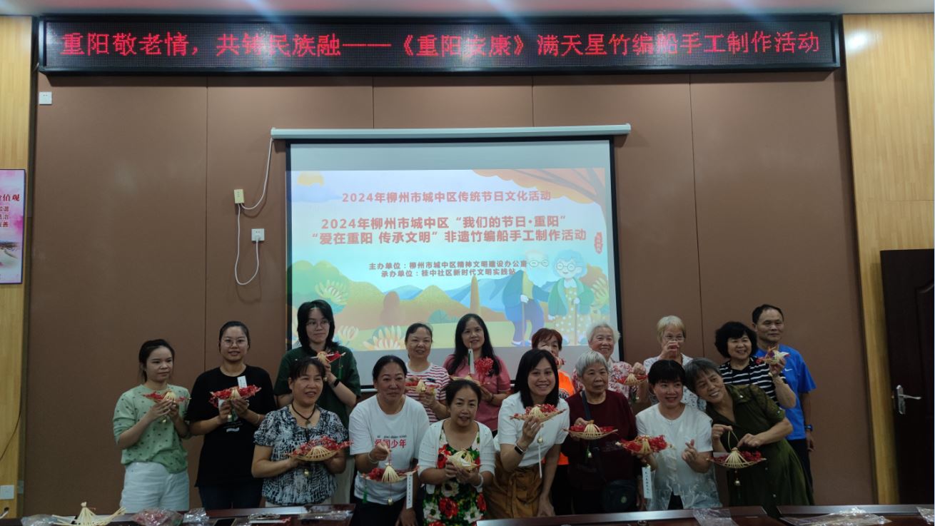 此次活动不仅丰富了社区居民的精神文化生活,更在重阳佳节之际,用实际行动诠释了尊老爱老的传统美德和民族团结的深刻内涵。通过共同制作手工,大家在欢声笑语中增进了彼此的感情,感受到了民族团结的力量。正如那一艘艘精美的满天星竹编船,承载着桂中社区对老人们的关爱,以及各民族之间心连心的深厚情谊。