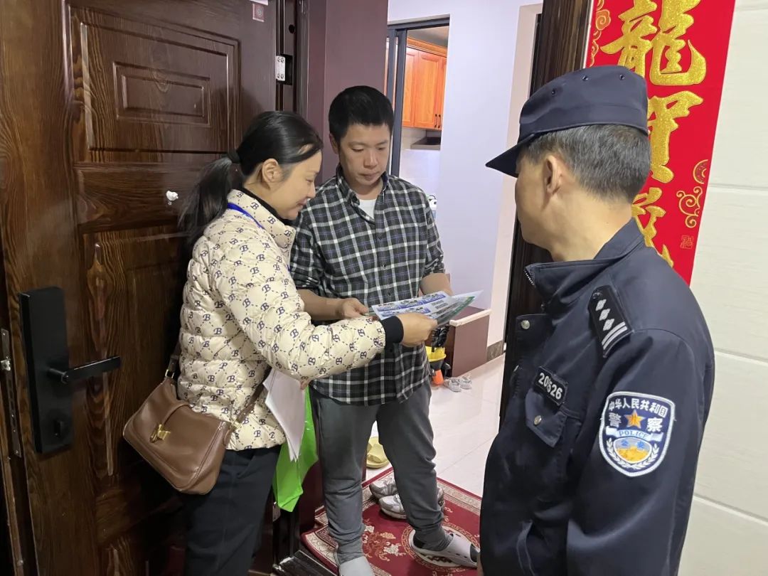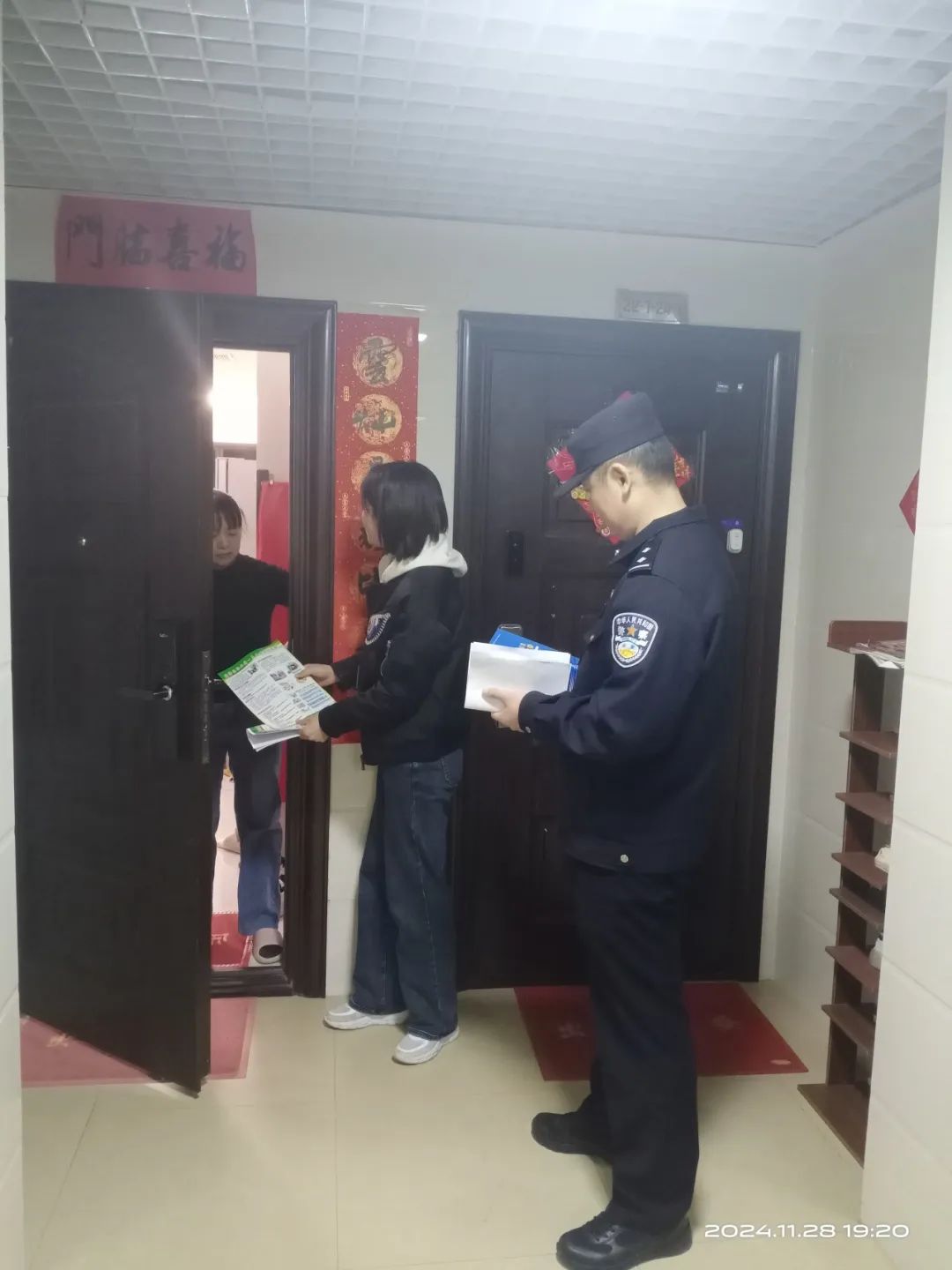 上门入户送平安,反诈宣传入人心。为深入推进反诈宣传工作,提高辖区群众反诈意识,保护广大人民群众的财产安全,11月28日晚,春风社区党委联合柳东派出所民警在温馨花园小区开展“敲门入户”筑防线,反诈宣传“零距离”活动,开展入户反诈知识宣传活动,向居民群众传递简单直观、行之有效的防诈技能,切实提高居民群众防诈反诈警惕意识。