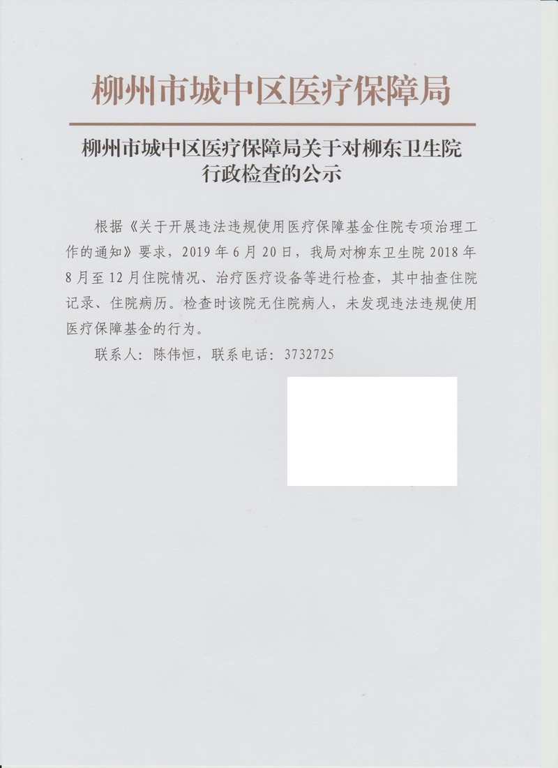 【医保局】柳州市城中区医疗保障局关于对柳东卫生院行政检查的公示