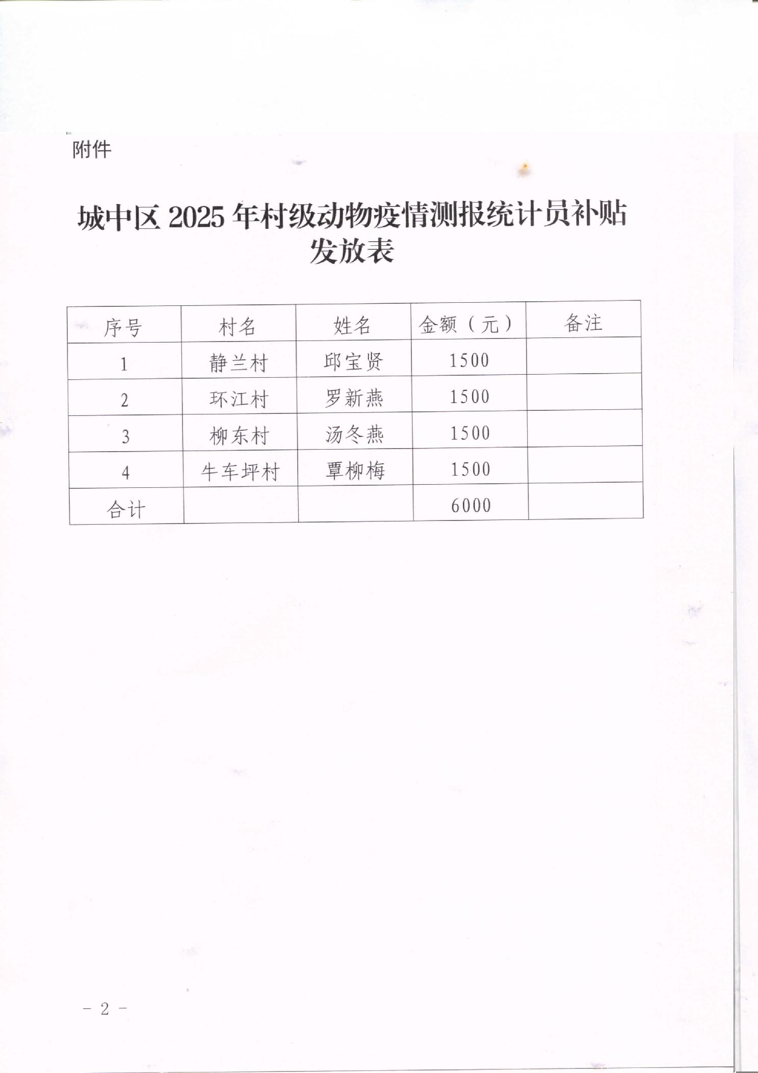 【农业农村局】区农业农村局关于发放2025年村级动物疫情测报统计员工作补助经费的公示