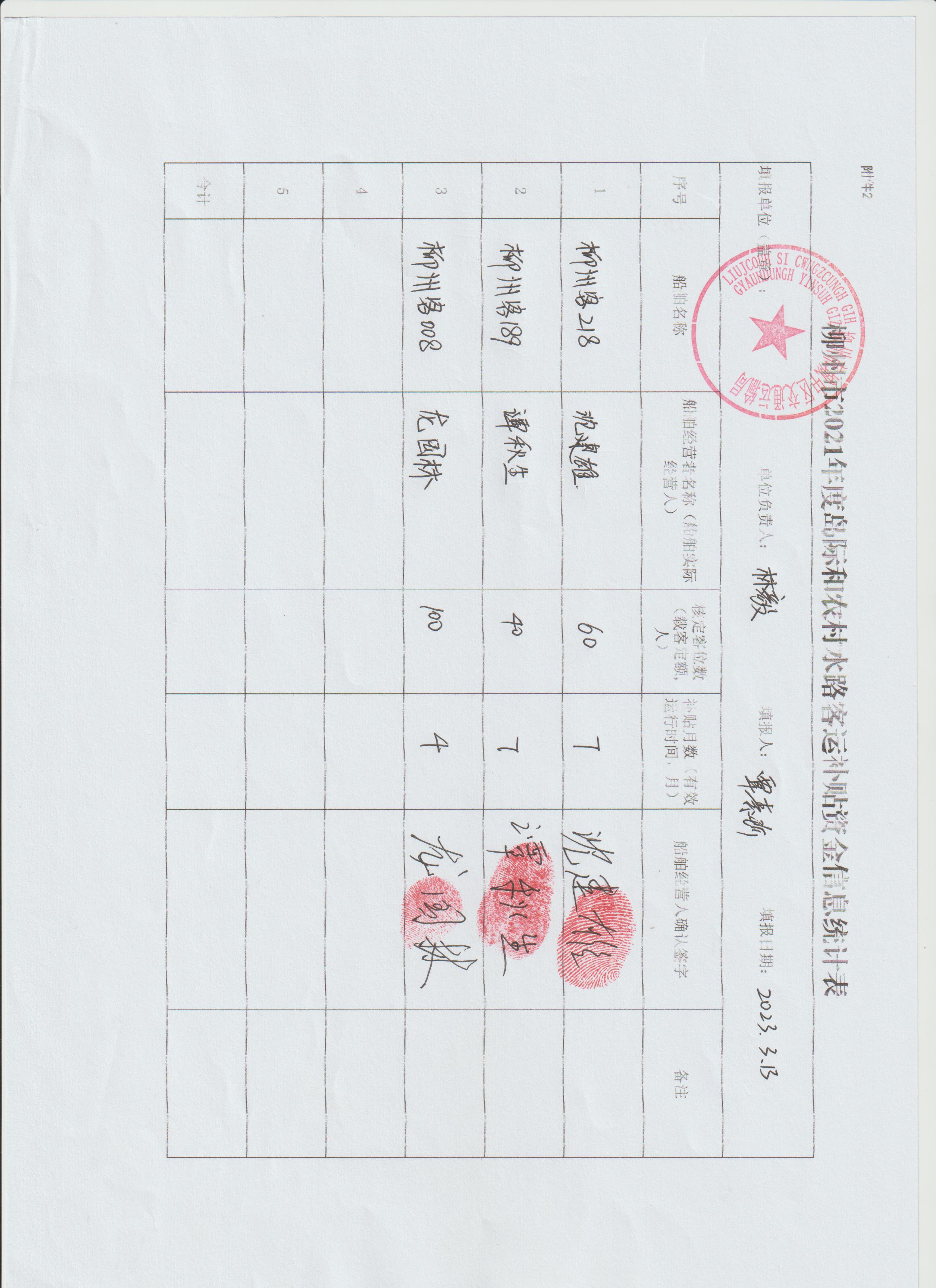 附件:柳州市2021年度岛际和农村水路客运补贴资金信息统计表