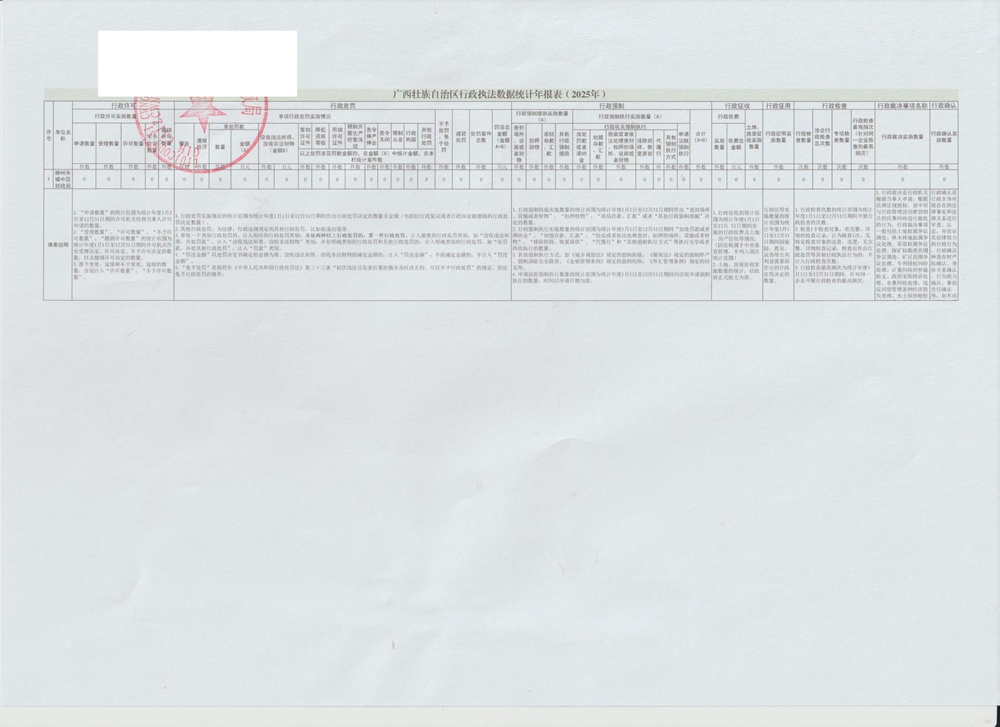 柳州市城中区财政局2025年度广西壮族自治区行政执法数据统计年报表