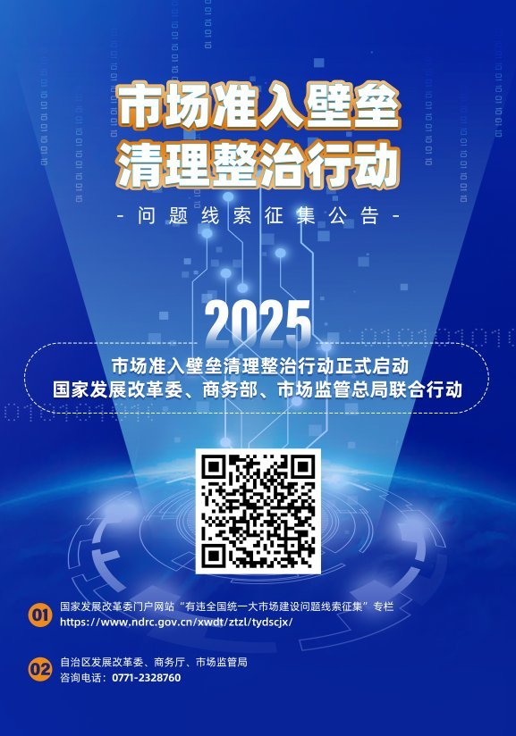 柳州市城中区发展和改革局、商务局、市场监督管理局于2025年5月至10月组织开展市场准入壁垒清理整治行动。从即日起征集以下问题线索: