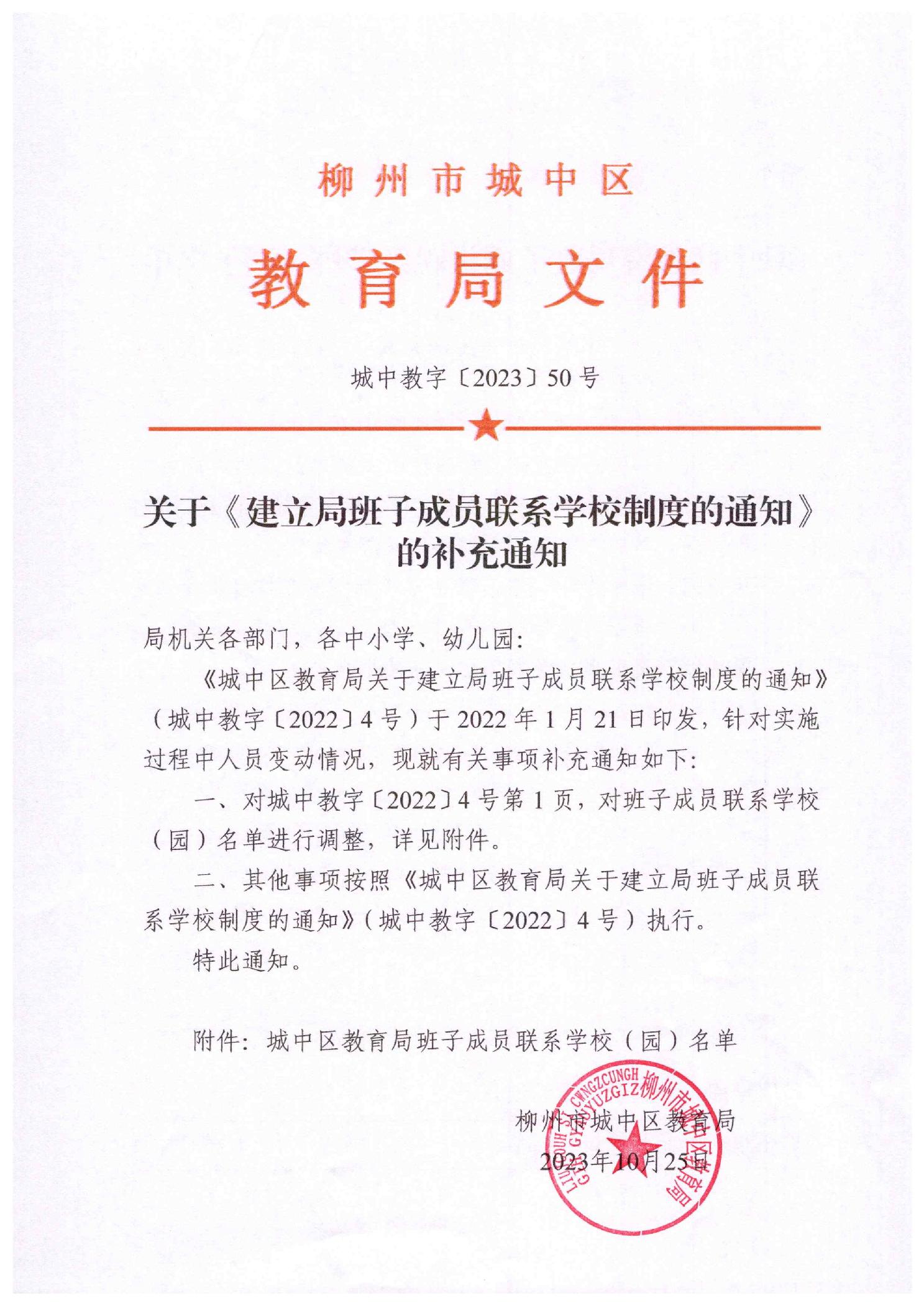 关于《建立局班子成员联系学校制度的通知》的补充通知